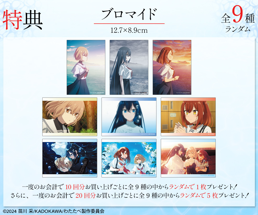 - 一度のお会計で10回分お買上げごとに 特典ブロマイド×1をプレゼント!