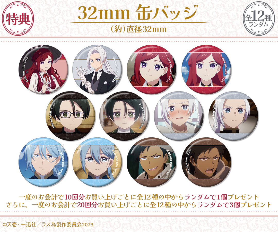 - 一度のお会計で20回分お買上げごとに 特典32mm缶バッジ×3をプレゼント!
