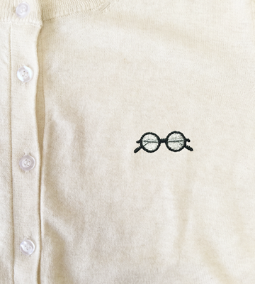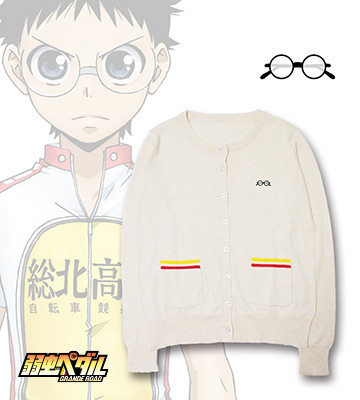 弱虫ペダルに登場する小野田坂道の丸メガネを胸元に刺繍し、普段着としても使用可能なカーディガンをご用意しました。