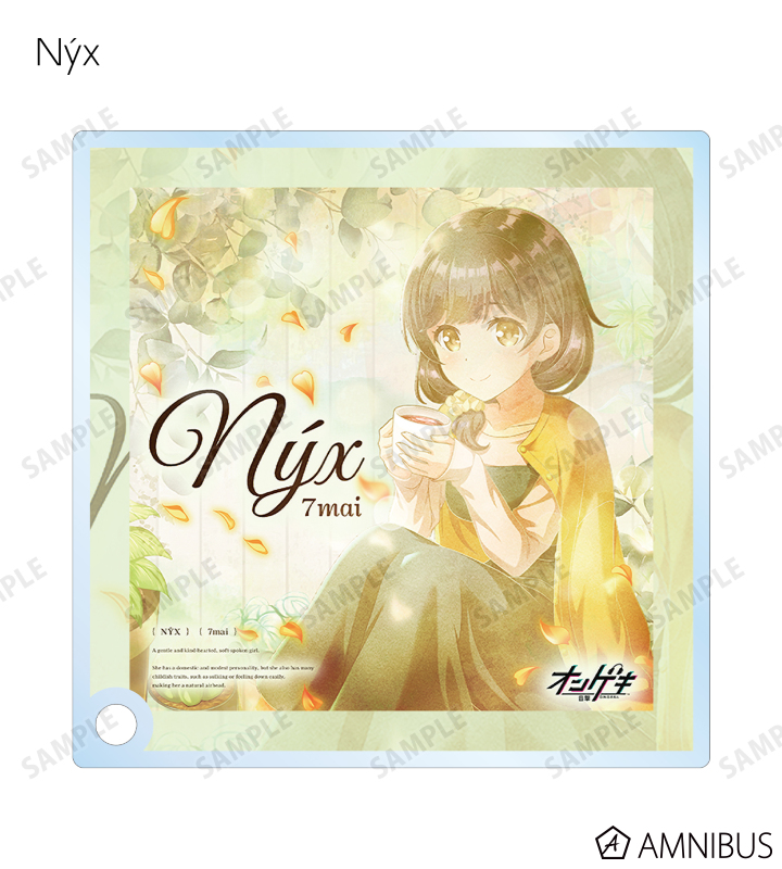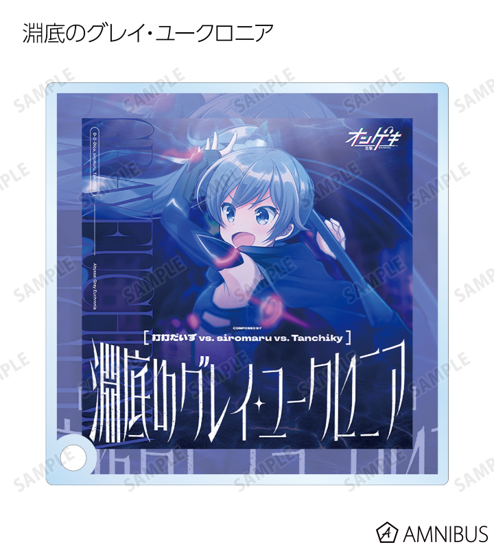 μ3、しとしとと、Sargasso、淵底のグレイ・ユークロニア、霧の書斎、THE TRiANGLE、Chant Say Yeah!、Nýxの楽曲ジャケットイラストを手のひらサイズのアクリルパネルに仕上げました。