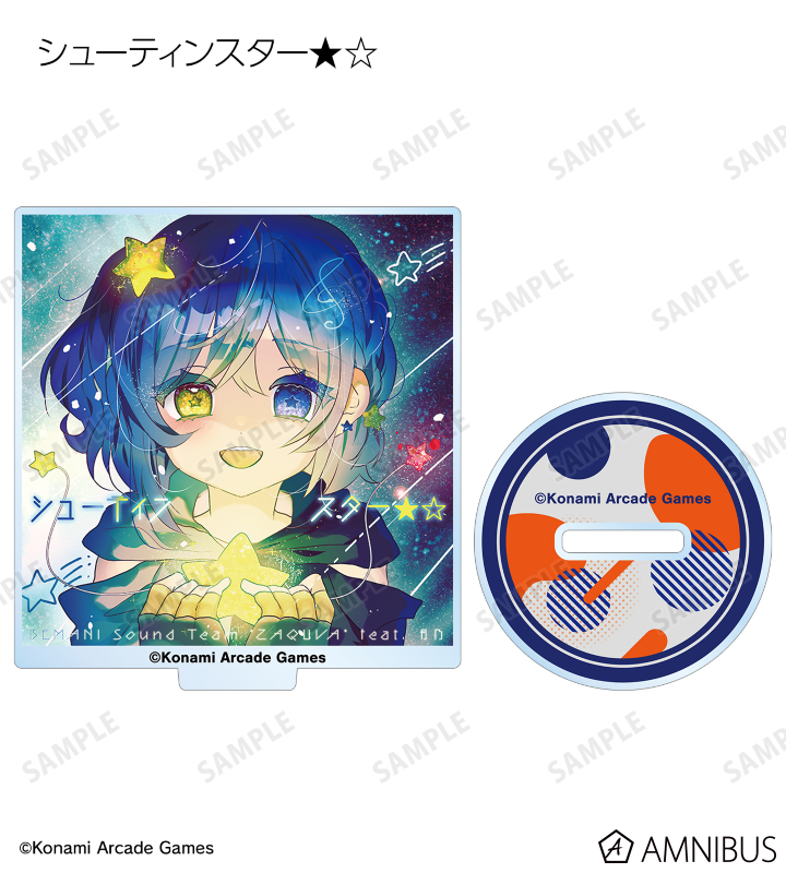 Bellatrix、Over Time Groove、New Order、Rewrite、狂乱華夜 feat.shully、耳鳴の理ー理ー理ー、ニケ、咲い咄、アステリア、ライラ、BREAKER、Monogatary、Heaven or Hell、Prog for your Soul、シューティンスター★☆の楽曲ジャケットイラストをアクリルスタンドに仕上げました。