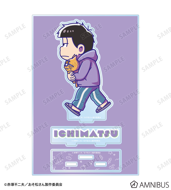 一松が歩いているちびキャラを新たに描き起こし、パーツ付きのBIGなアクリルスタンドに仕上げました。