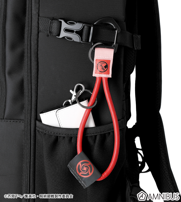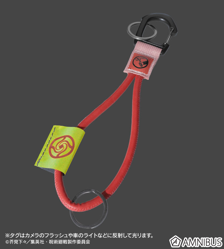 釘崎 野薔薇のイメージアイコン、東京都立呪術高等専門学校の校章がプリントされたタグをロープキーリングに仕上げました。
