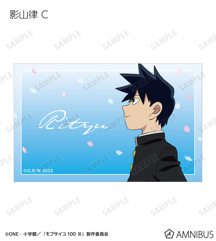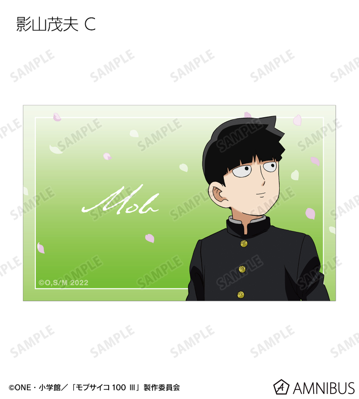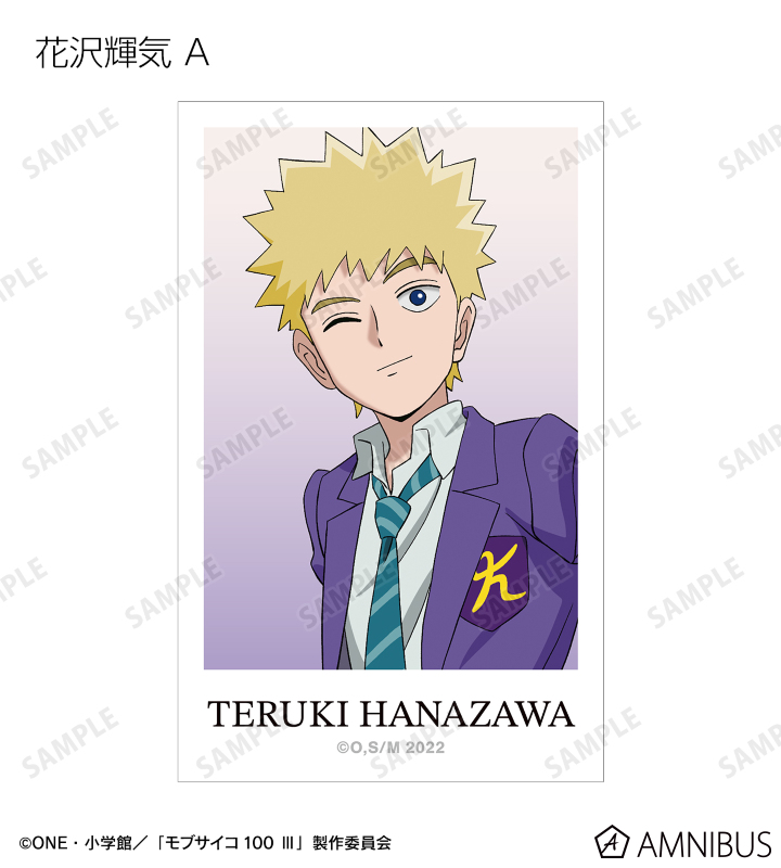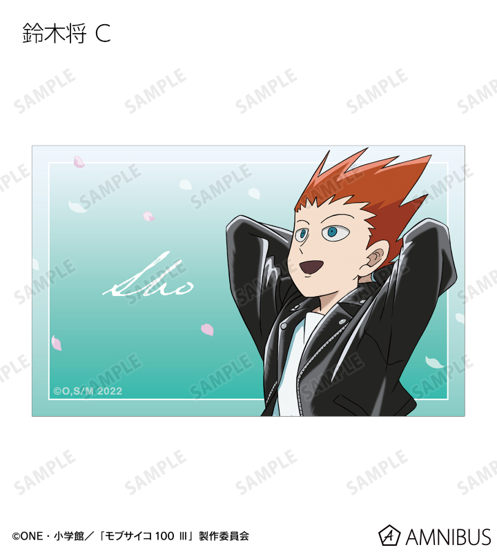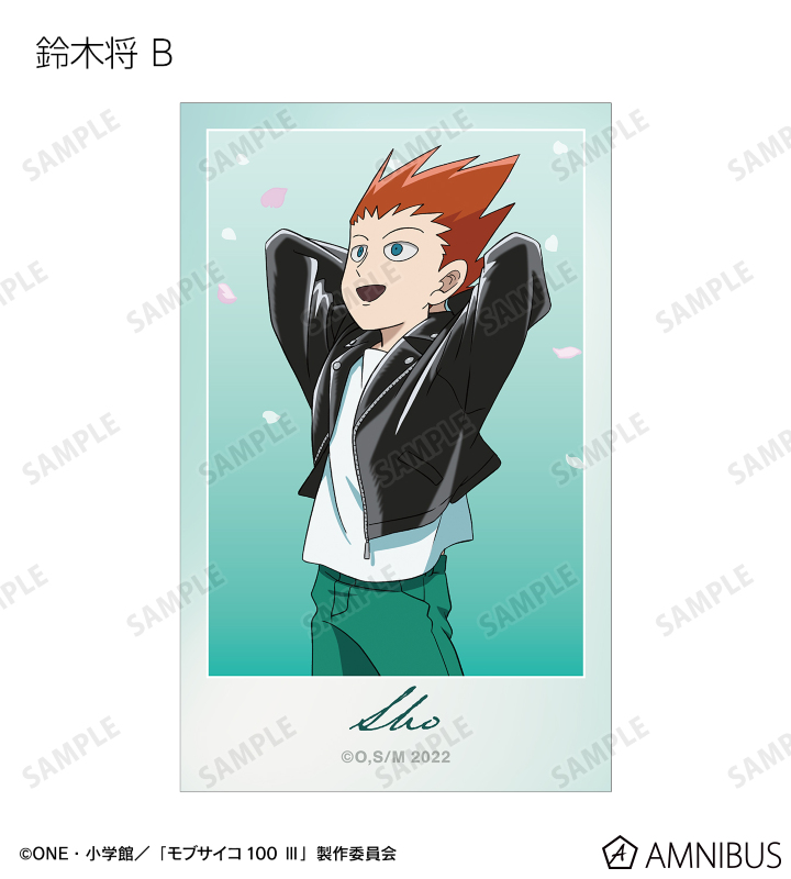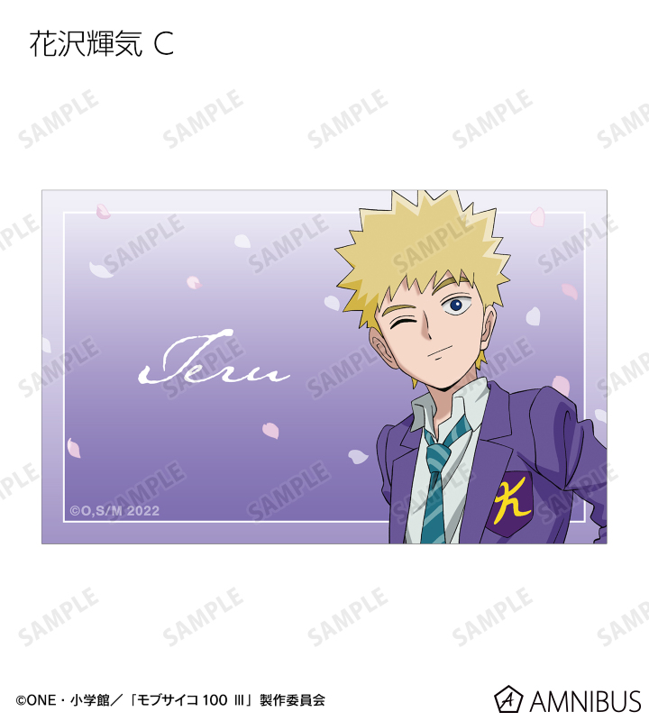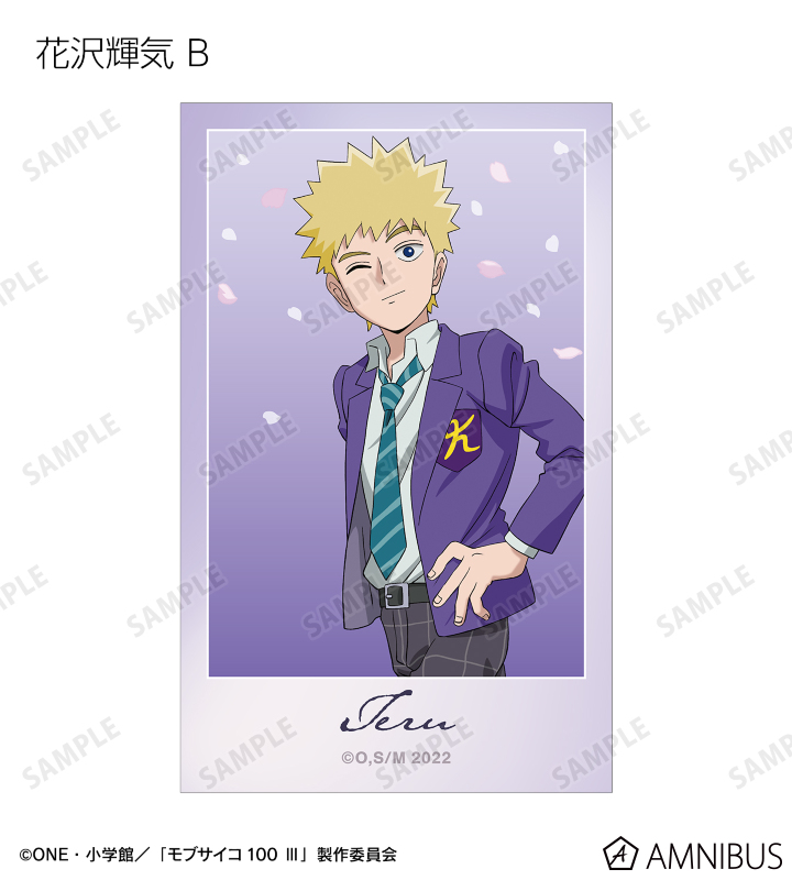 影山茂夫、霊幻新隆、影山律、花沢輝気、鈴木将の描き下ろしイラストをイラストカードに仕上げました。
