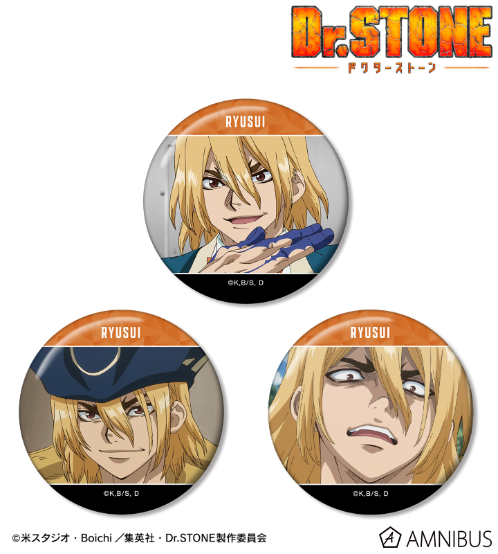 TVアニメ「Dr.STONE」より、缶バッジ3個セットの登場です。