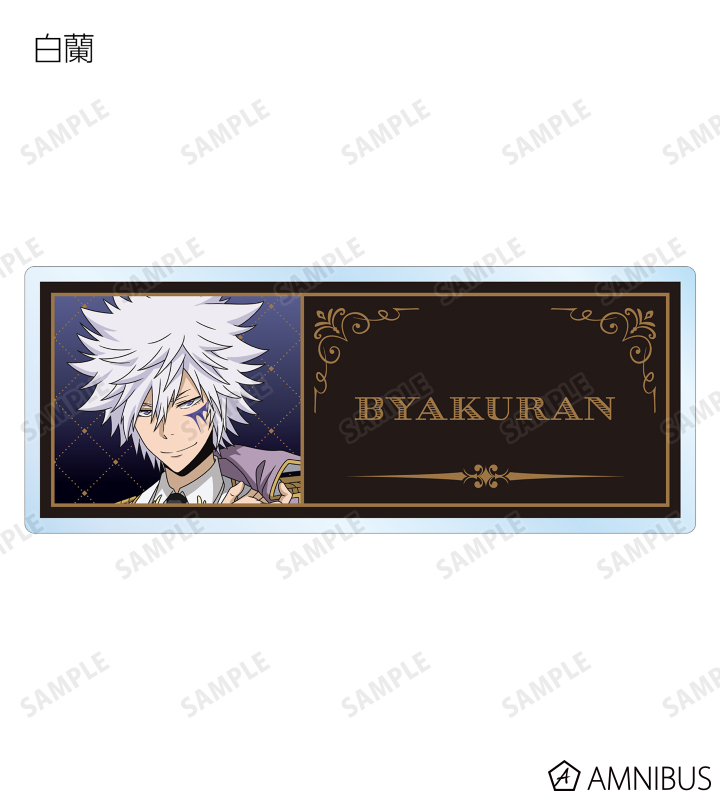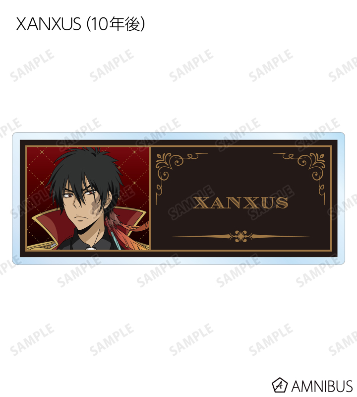 沢田 綱吉、リボーン、獄寺 隼人、山本 武、雲雀 恭弥、六道 骸(10年後)、XANXUS(10年後)、スペルビ・スクアーロ(10年後)、ベルフェゴール(10年後)、フラン、白蘭の描き下ろしイラストをアクリルネームプレートに仕上げました。