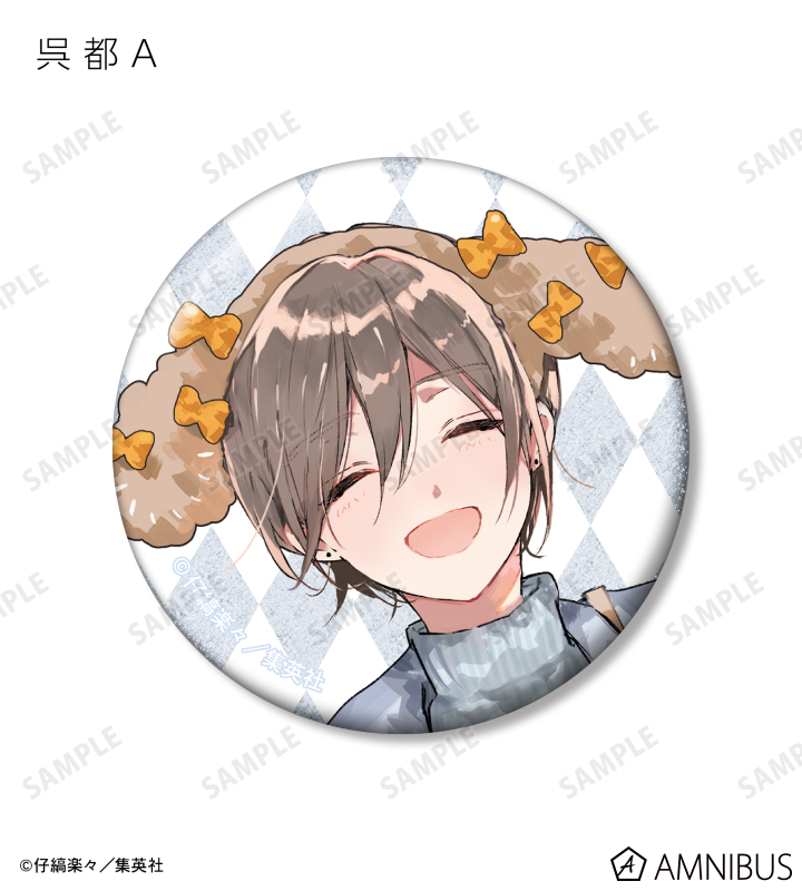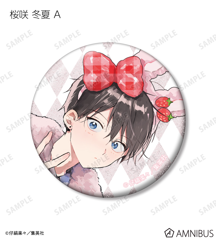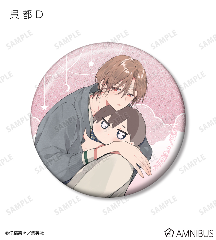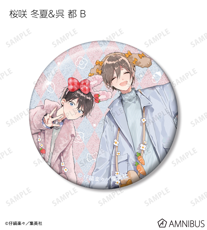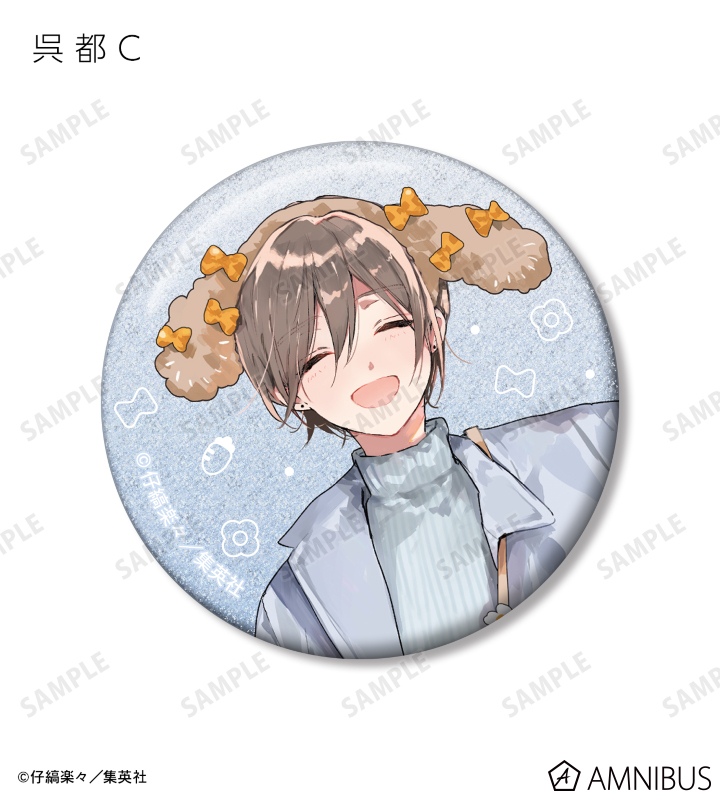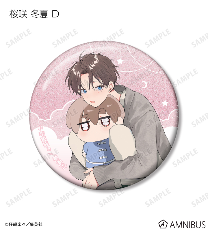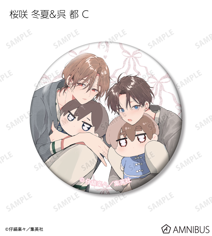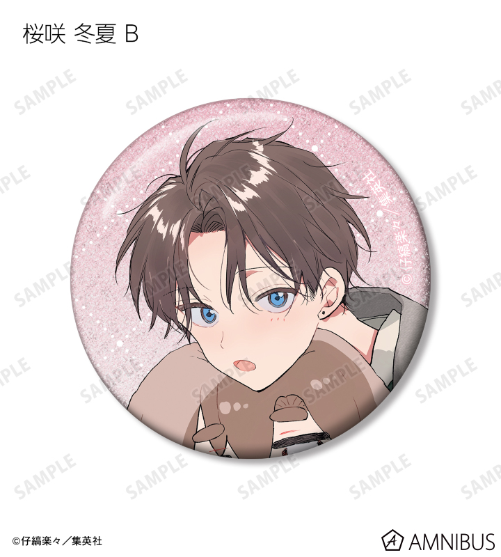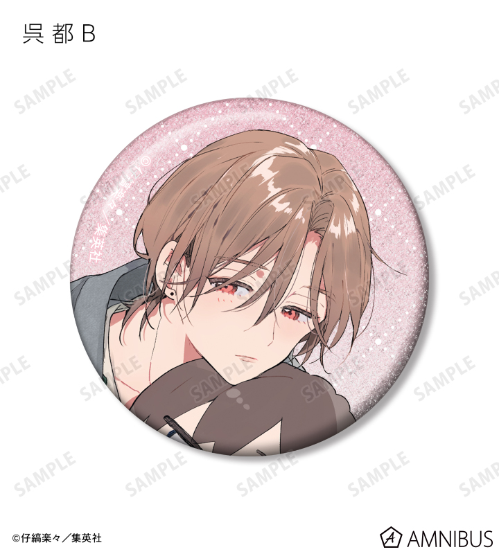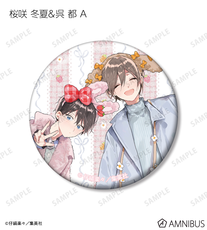 仔縞楽々先生描き下ろしイラストの桜咲 冬夏、呉 都をグリッター加工を施した缶バッジに仕上げました。