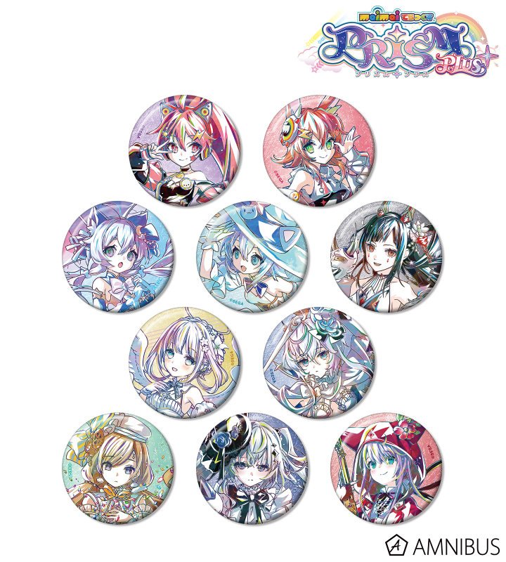 乙姫(ばでぃーず)、ラズ(ばでぃーず)、ソルト(ぷりずむぷらす)、みるく(ぷりずむぷらす)、黒姫、百合咲ミカ、白明星ルキ、リズ、アシッド(幼少期)、エーペルージュのイラストを新たなタッチで魅力的に表現し、缶バッジに仕上げました。