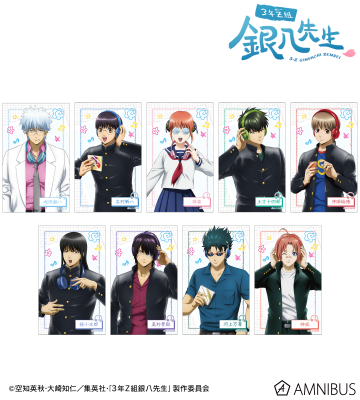 TVアニメ『3年Z組銀八先生』より、トレーディングコンパクトクリアカードの登場です。坂田銀八、志村新八、神楽、土方十四郎、沖田総悟、桂小太郎、高杉晋助、河上万斉、神威の描き下ろしイラストをクリアカードに仕上げました。