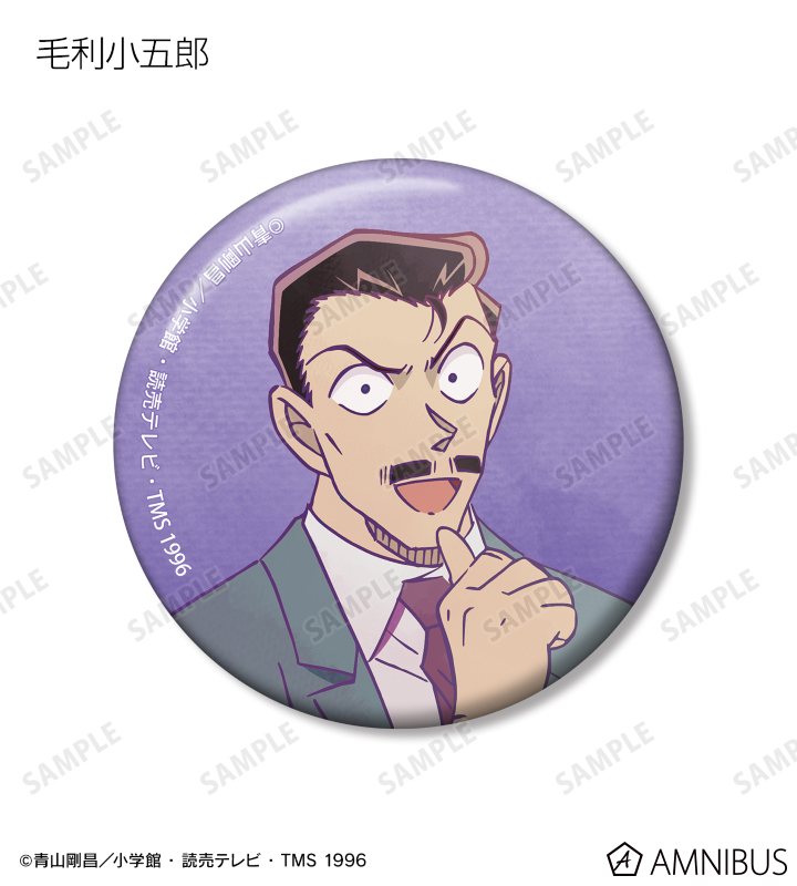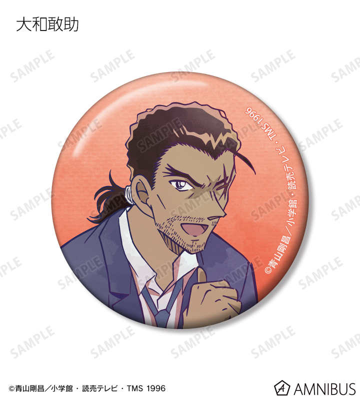 江戸川コナン、毛利蘭、毛利小五郎、灰原哀、大和敢助、上原由衣、諸伏高明、安室透、風見裕也のイラストを新たなタッチで魅力的に表現し、缶バッジに仕上げました。