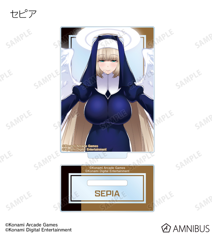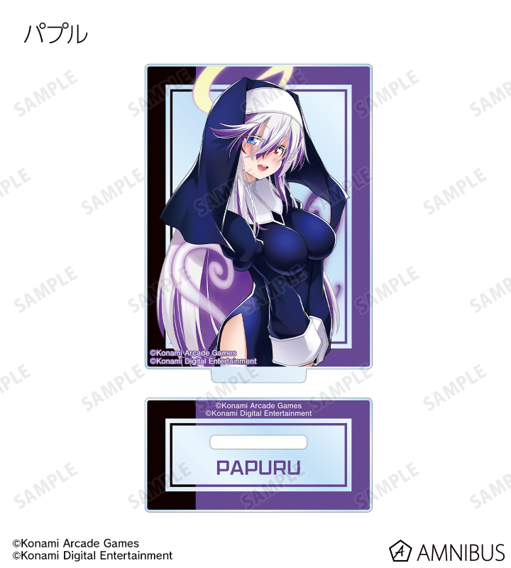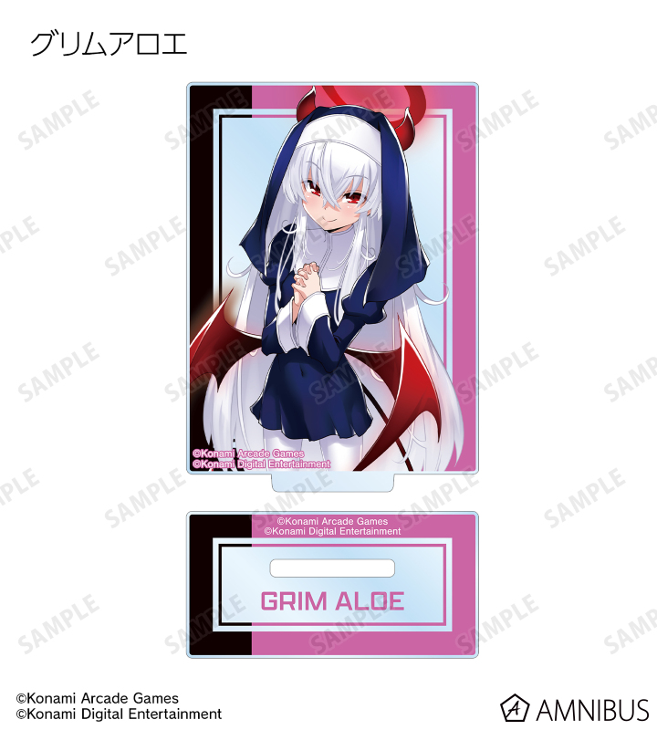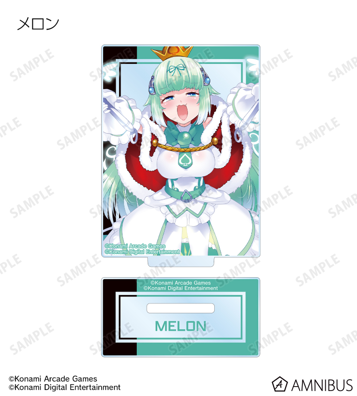 セピア、グリムアロエ、パプル、ブラス、モモコ、パイン、プルーン、メロンのイラストをアクリルスタンドに仕上げました。