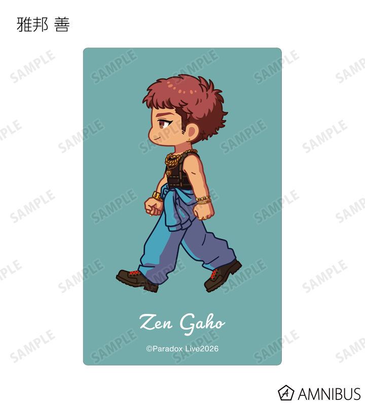 矢戸乃上 珂波汰、矢戸乃上 那由汰、翠石 依織、雅邦 善、征木 北斎、伊藤 紗月、円山 玲央、大和 憧吾、緋景 斗真、呉羽 葵、三洲寺 甘太郎、燕 東夏、白 忠成、九頭竜 智生、辰宮 晴臣の歩く姿を新たにちびキャラに描き起こし、カードステッカーに仕上げました。