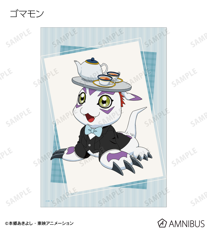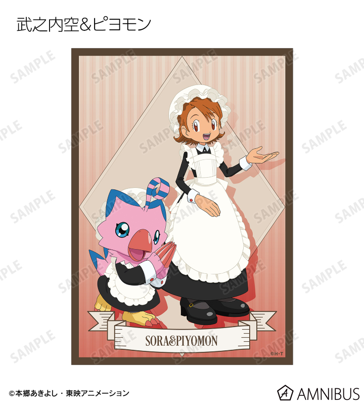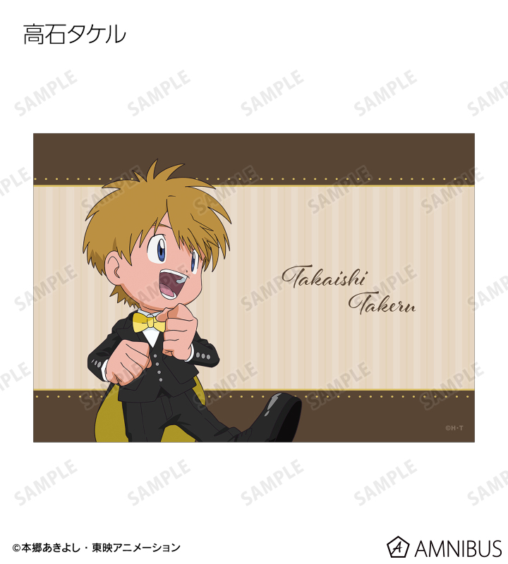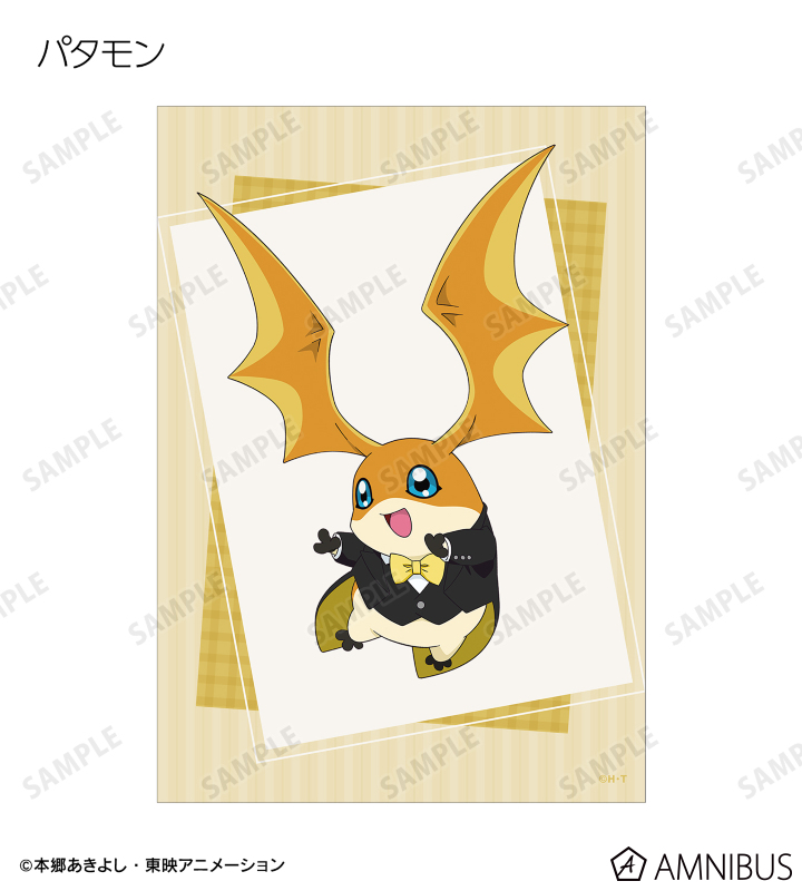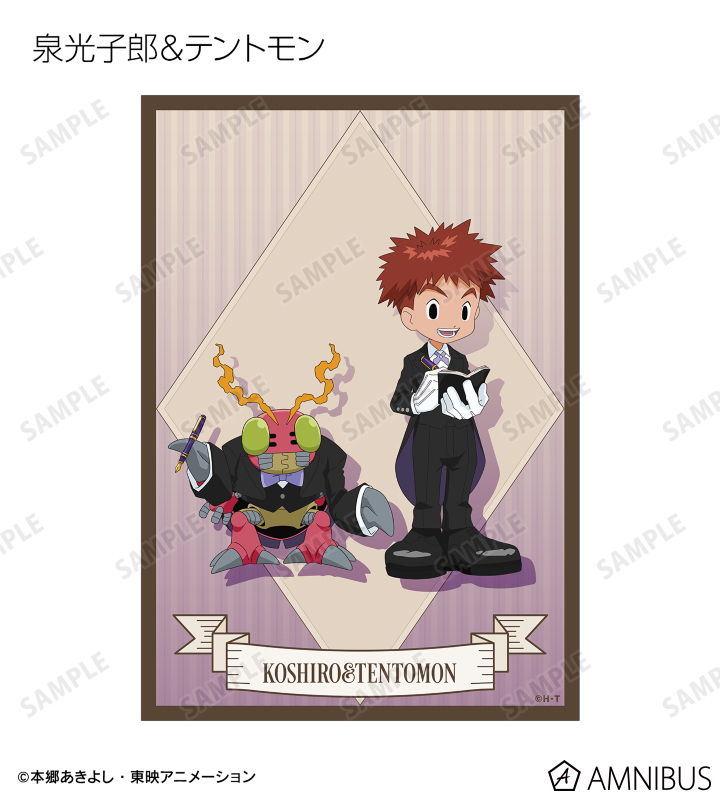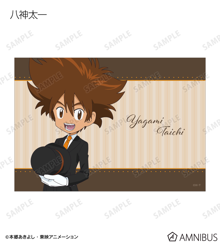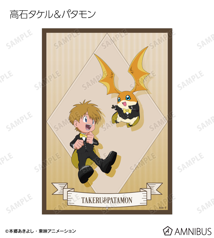 八神太一、アグモン、石田ヤマト、ガブモン、武之内空、ピヨモン、泉光子郎、テントモン、太刀川ミミ、パルモン、城戸丈、ゴマモン、高石タケル、パタモン、八神ヒカリ、テイルモンの描き下ろしイラストをブロマイドに仕上げました。
