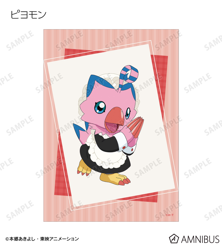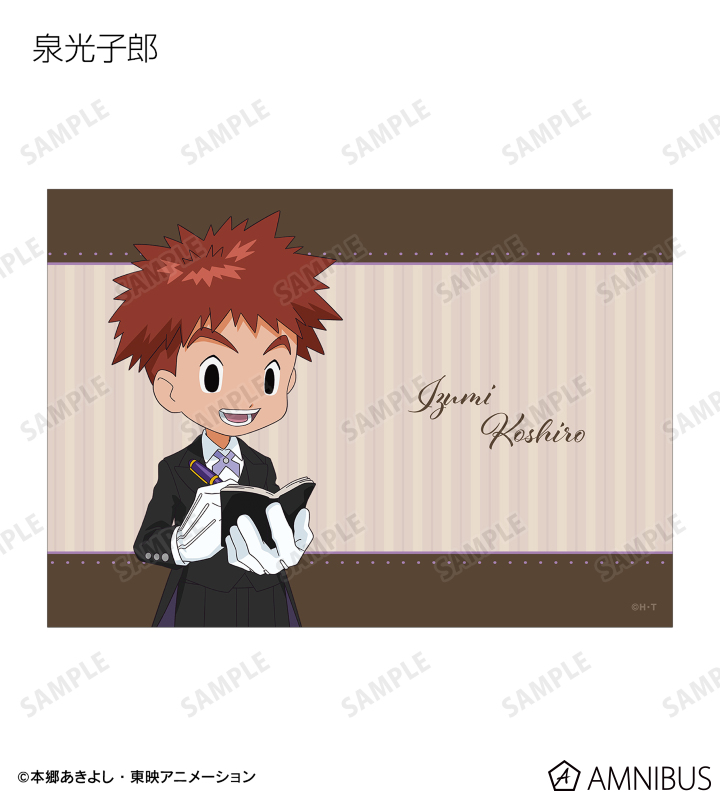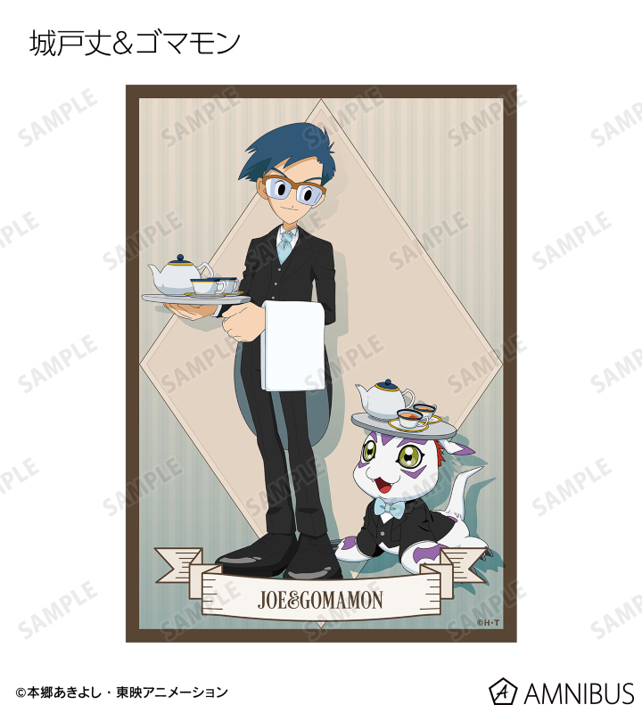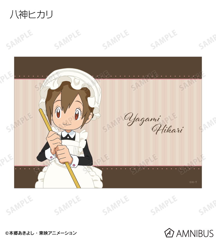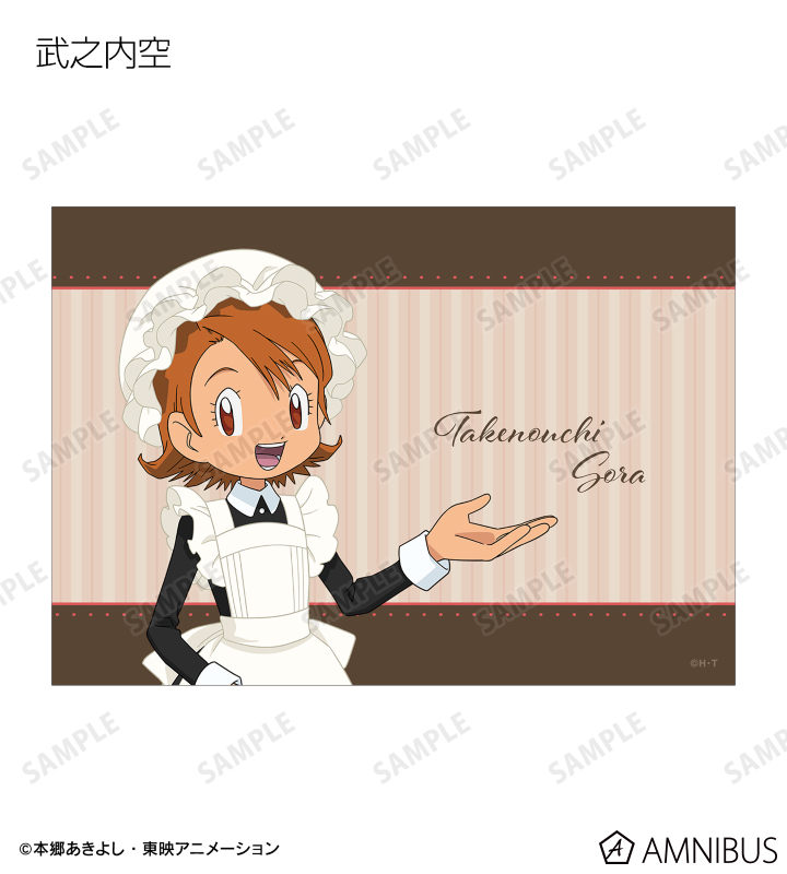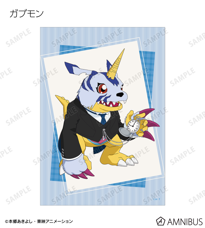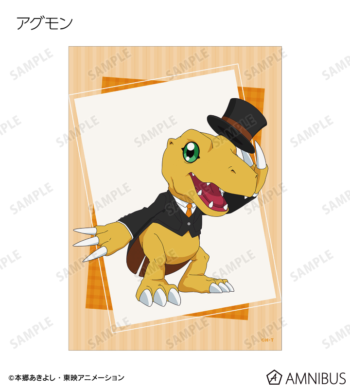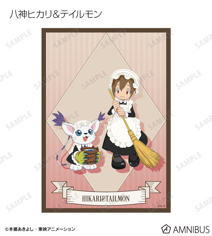 八神太一、アグモン、石田ヤマト、ガブモン、武之内空、ピヨモン、泉光子郎、テントモン、太刀川ミミ、パルモン、城戸丈、ゴマモン、高石タケル、パタモン、八神ヒカリ、テイルモンの描き下ろしイラストをブロマイドに仕上げました。