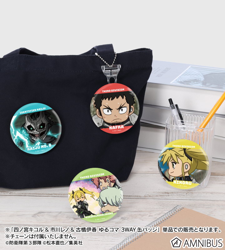 『怪獣8号』より、ゆるコマ 3WAY缶バッジの登場です。