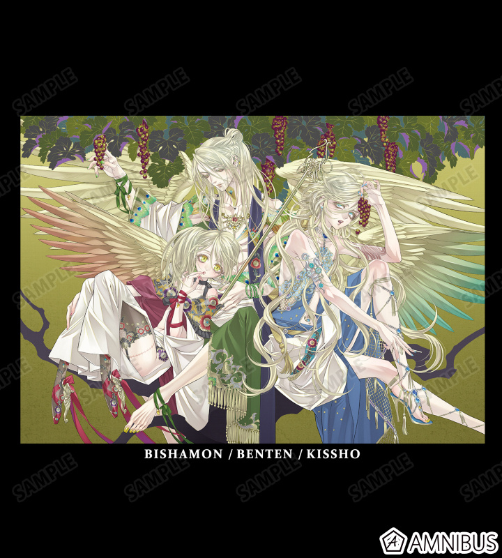 毘沙門、弁天、吉祥のイラストをBIGなシルエットのロングTシャツに仕上げました。