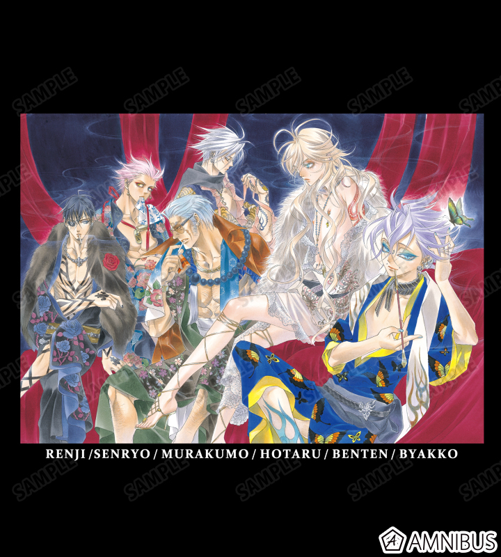 黒薔薇憐児、千両、叢雲、風螢、弁天、白狐のイラストをBIGなシルエットのロングTシャツに仕上げました。
