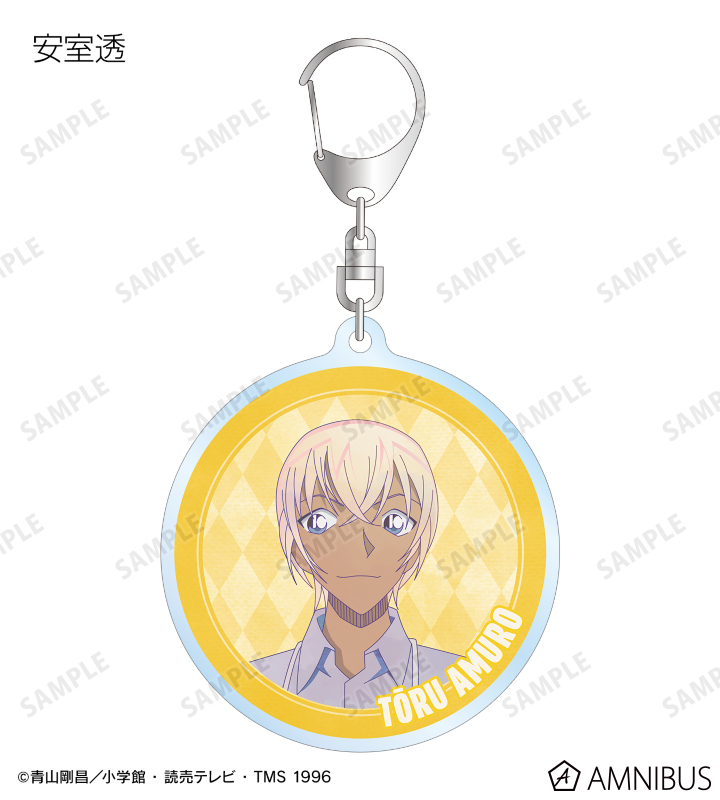 江戸川コナン、毛利蘭、毛利小五郎、灰原哀、大和敢助、上原由衣、諸伏高明、安室透、風見裕也のイラストを新たなタッチで魅力的に表現し、アクリルキーホルダーに仕上げました。