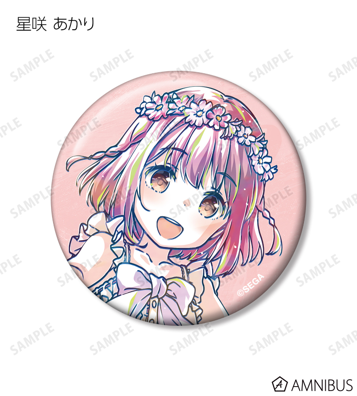 星咲 あかり、藤沢 柚子、三角 葵、高瀬 梨緒、藍原 椿、結城 莉玖、早乙女 彩華、桜井 春菜のイラストを新たなタッチで魅力的に表現し、缶バッジに仕上げました。