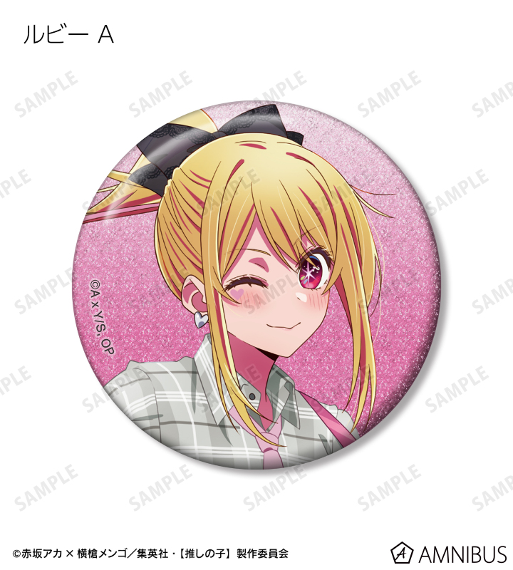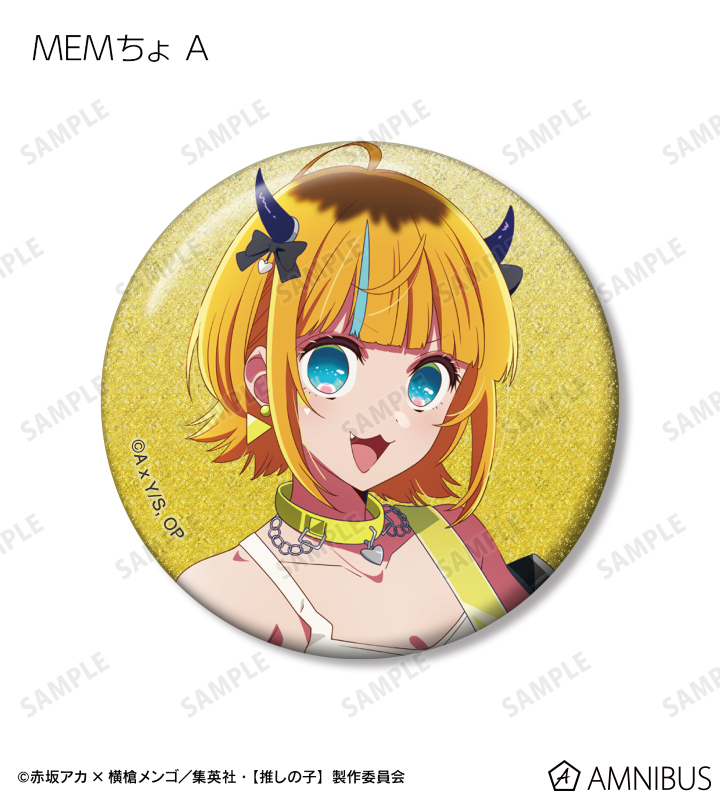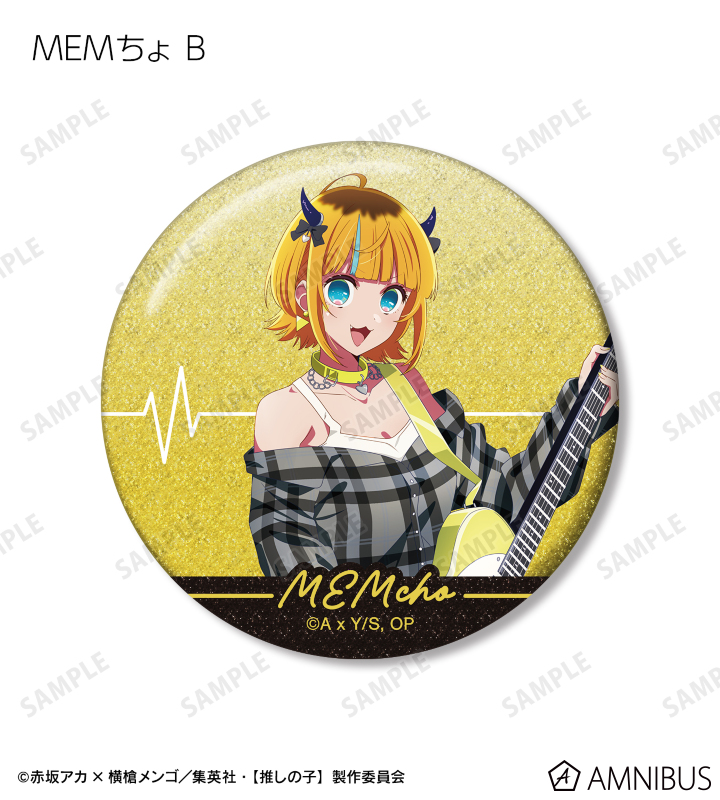 アイ、ルビー、有馬かな、MEMちょの描き下ろしイラストをグリッター加工を施した缶バッジに仕上げました。