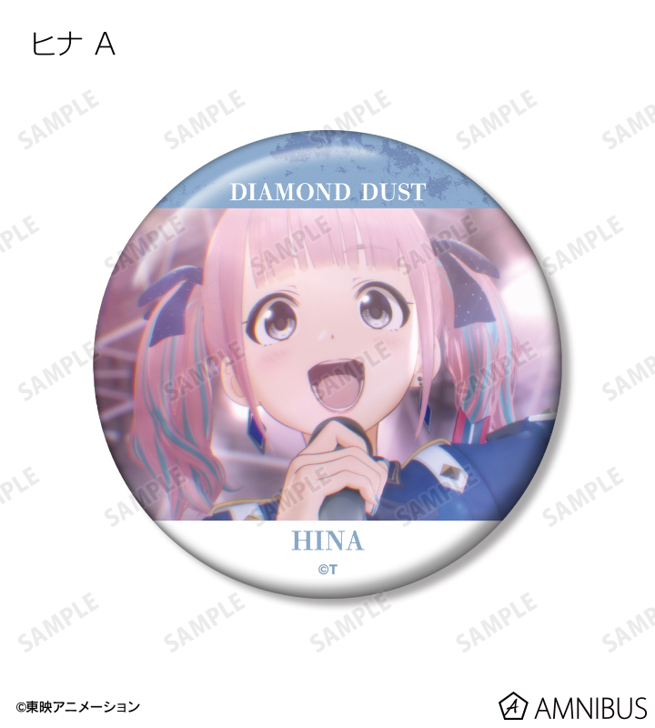 井芹 仁菜、河原木 桃香、安和 すばる、海老塚 智、ルパ、ヒナ、リン、ナナ、アイの印象的なシーンを缶バッジに仕上げました。