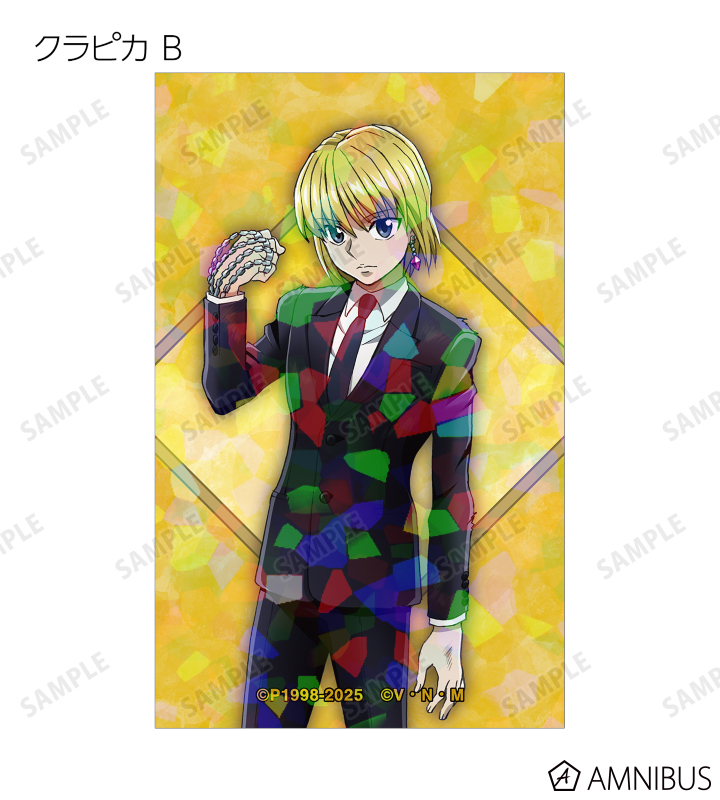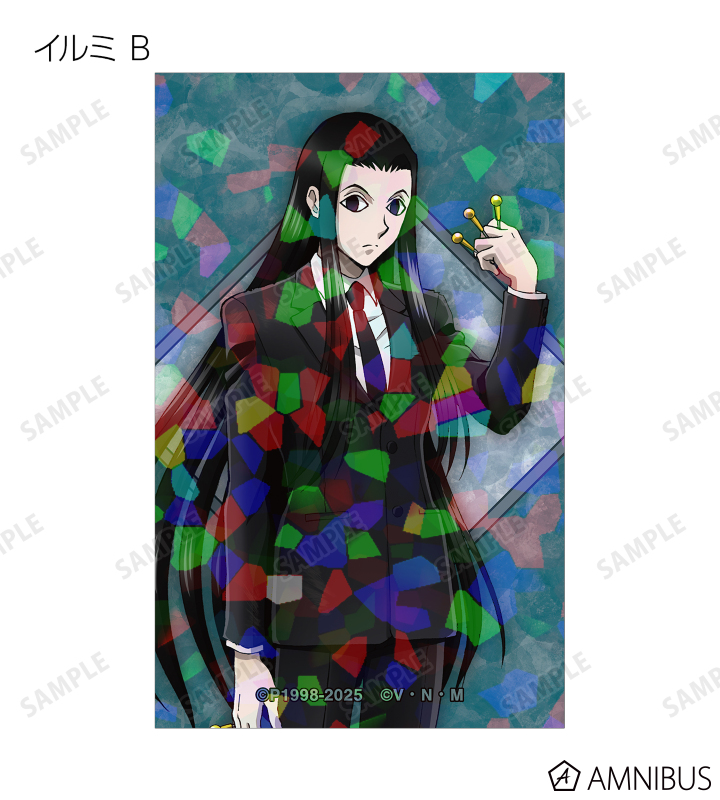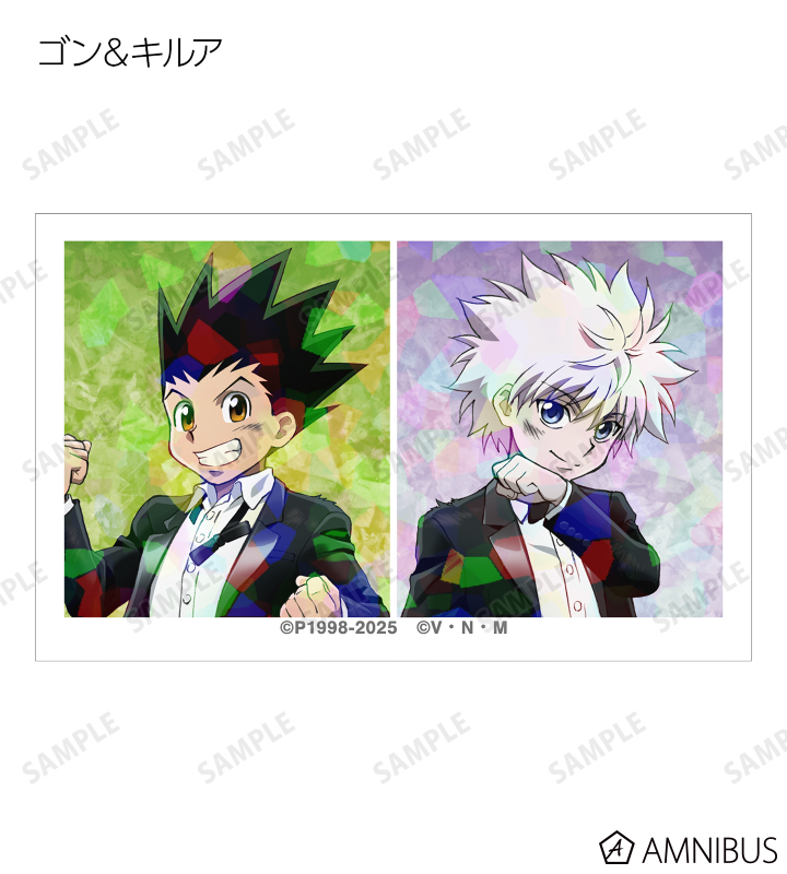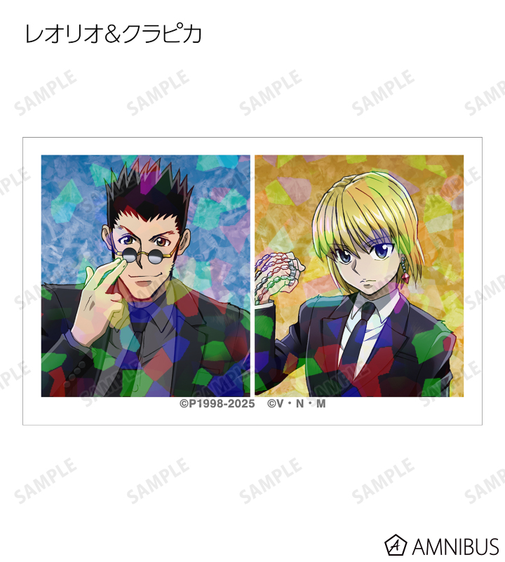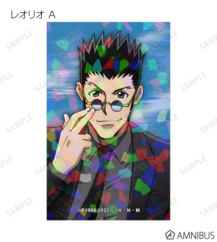 ゴン、キルア、レオリオ、クラピカ、クロロ、シャルナーク、フェイタン、ヒソカ、イルミの描き下ろしイラストをホログラム加工を施したイラストカードに仕上げました。