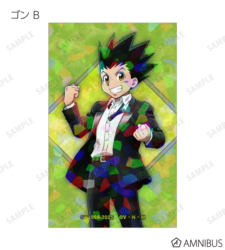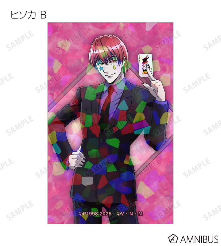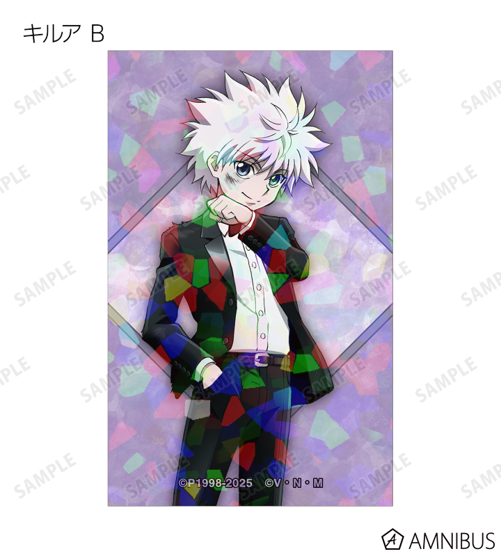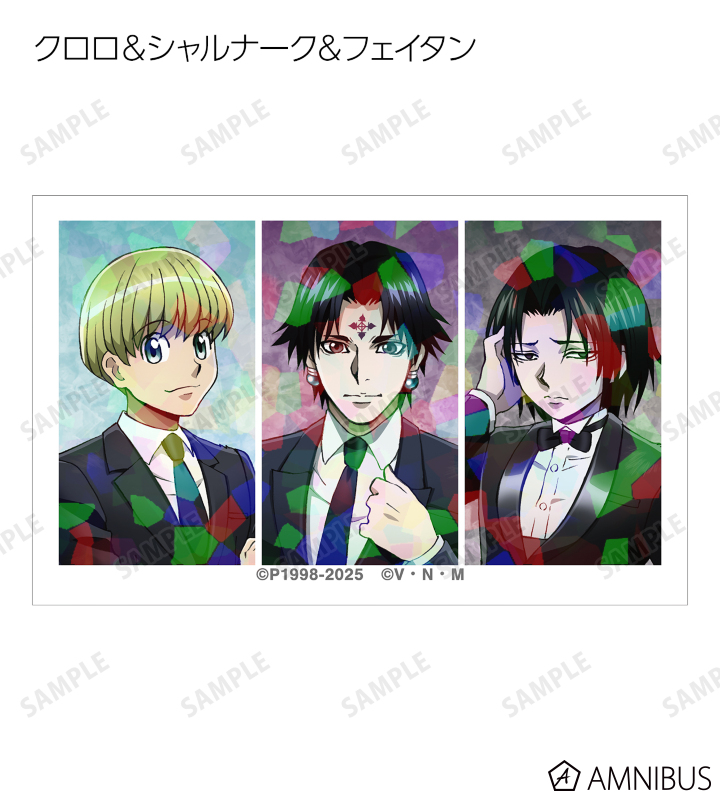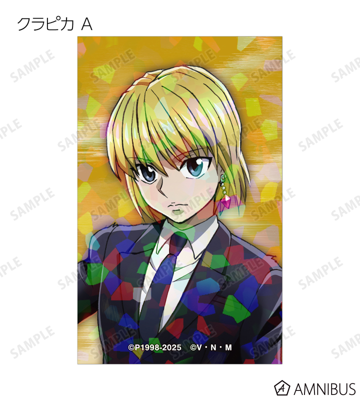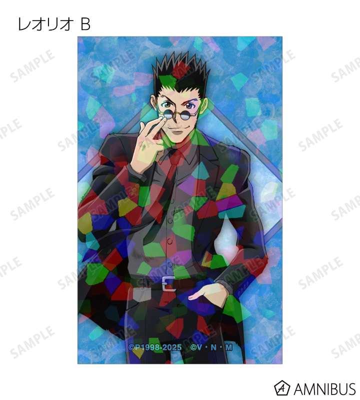 ゴン、キルア、レオリオ、クラピカ、クロロ、シャルナーク、フェイタン、ヒソカ、イルミの描き下ろしイラストをホログラム加工を施したイラストカードに仕上げました。