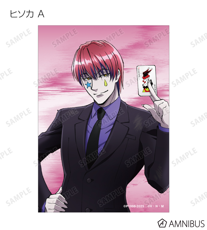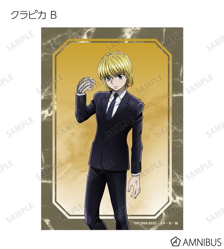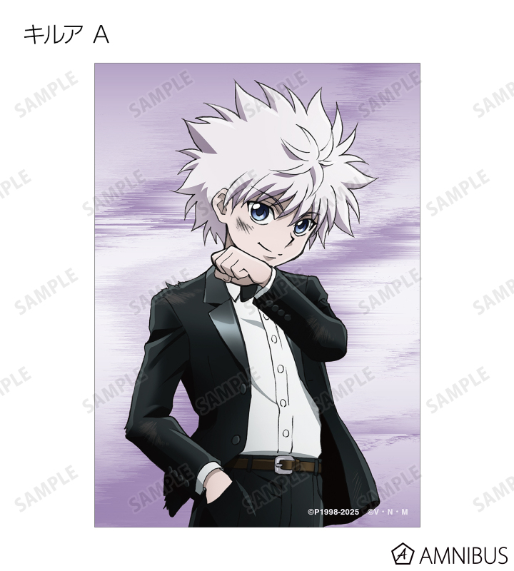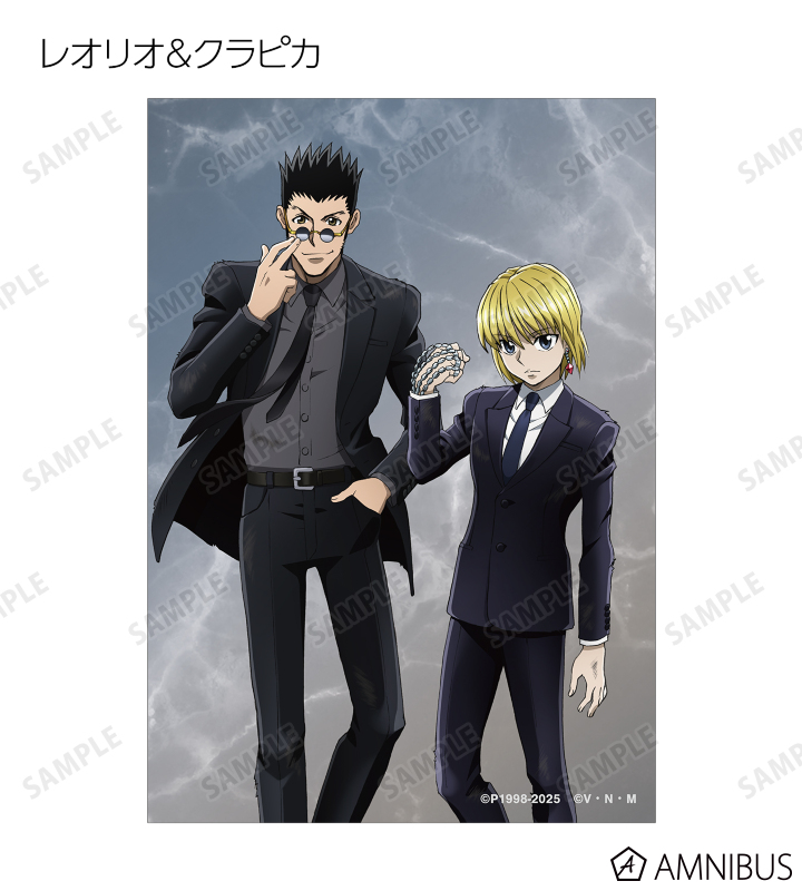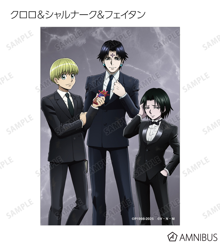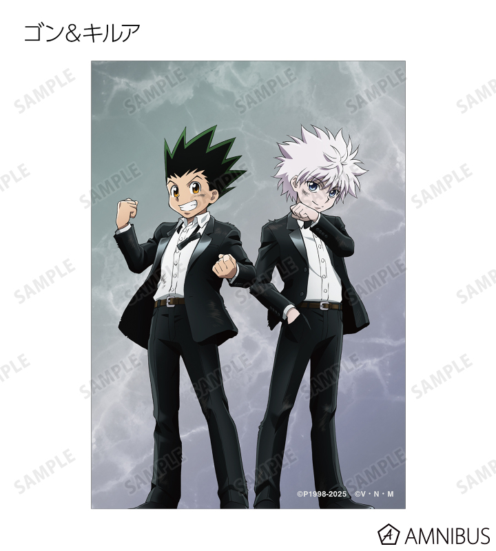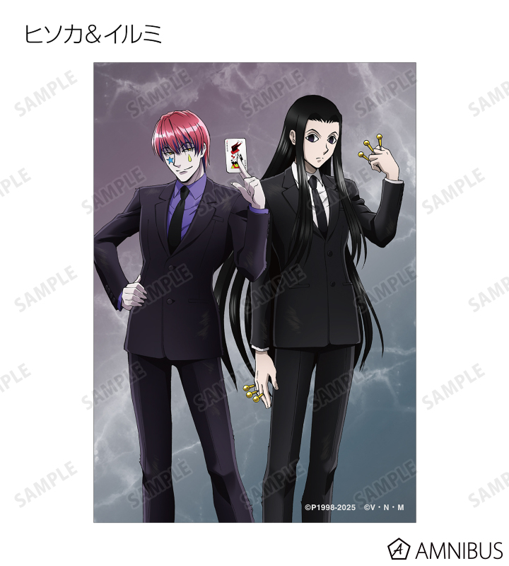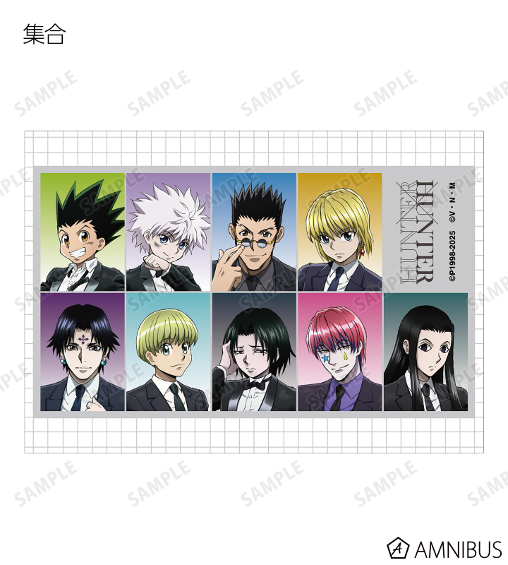 ゴン、キルア、レオリオ、クラピカ、クロロ、シャルナーク、フェイタン、ヒソカ、イルミの描き下ろしイラストをブロマイドに仕上げました。