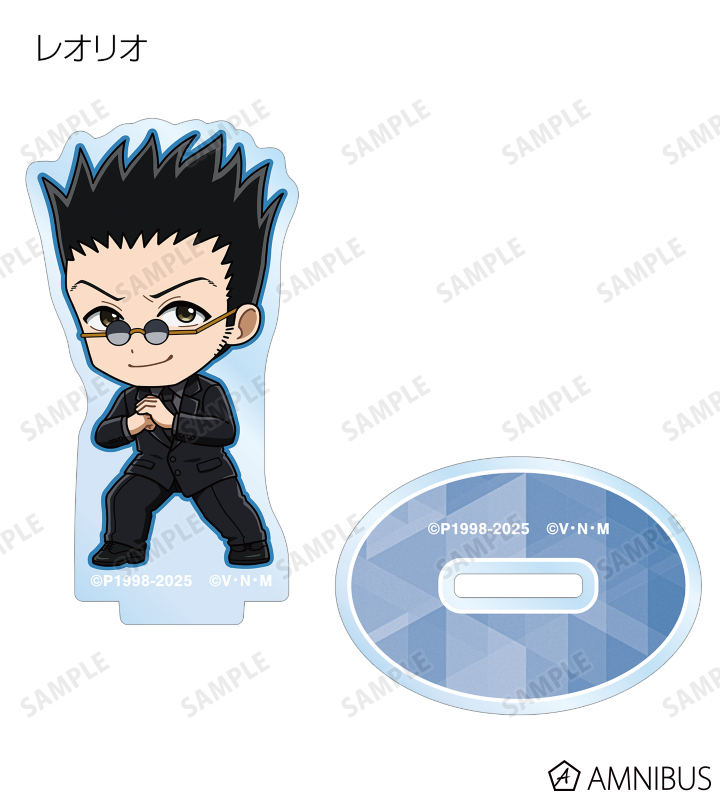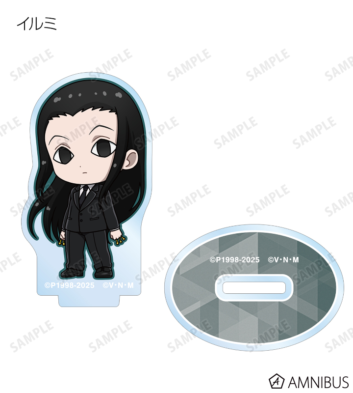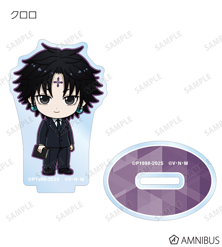 ゴン、キルア、レオリオ、クラピカ、クロロ、シャルナーク、フェイタン、ヒソカ、イルミの描き起こしちびキャライラストをメインにデザインし、アクリルスタンドに仕上げました。