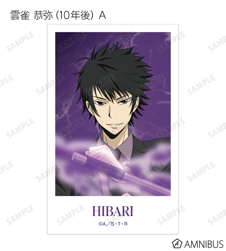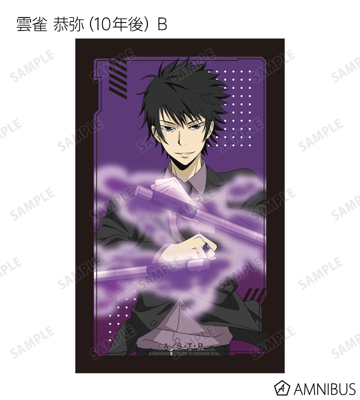 沢田 綱吉、リボーン、獄寺 隼人(10年後)、山本 武(10年後)、雲雀 恭弥(10年後)、六道 骸(10年後)、ディーノ(10年後)、XANXUS(10年後)、スペルビ・スクアーロ(10年後)、ベルフェゴール(10年後)、フラン、白蘭の描き下ろしイラストをイラストカードに仕上げました。
