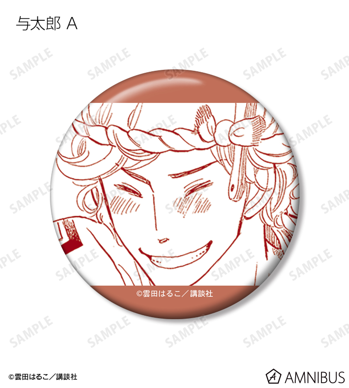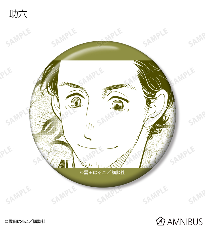 与太郎、八雲、菊比古、信之助、小夏、松田さん、樋口、萬月、助六、みよ吉の原作コマイラストを缶バッジに仕上げました。
