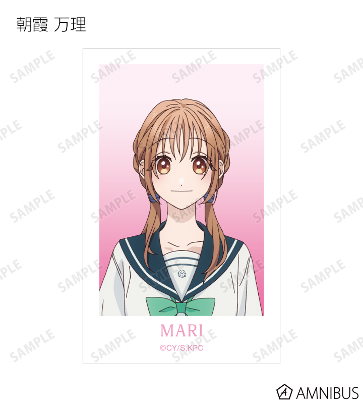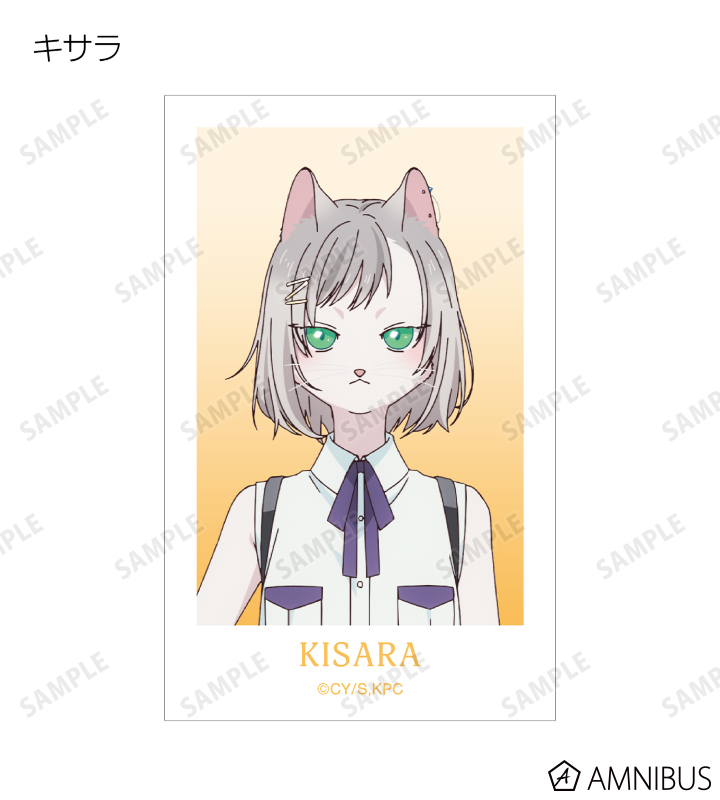 朝霞 万理、飛高 繋、相田 雪紘、キサラのイラストをインスタントカメラで撮影したようなデザインのイラストカード4枚セットに仕上げました。
