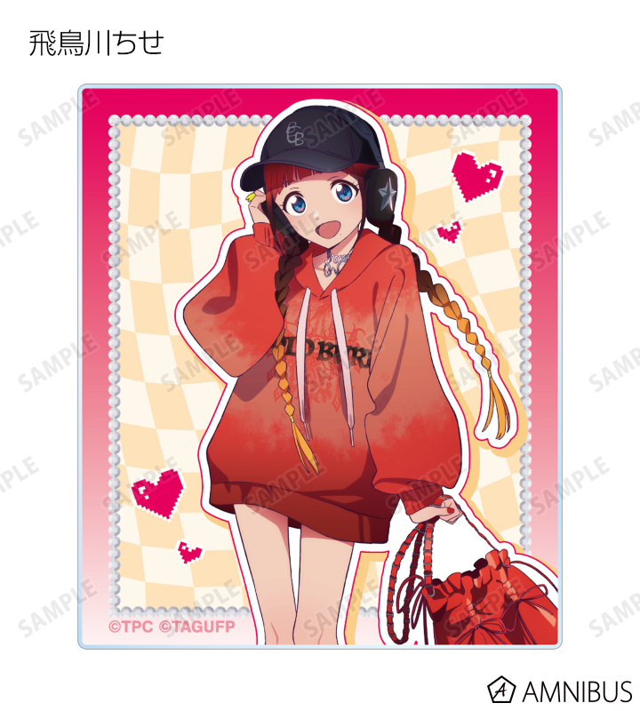 宝多六花、新条アカネ、南 夢芽、飛鳥川ちせ、2代目、ムジナ、ひめの描き下ろしイラストをアクリルカードに仕上げました。