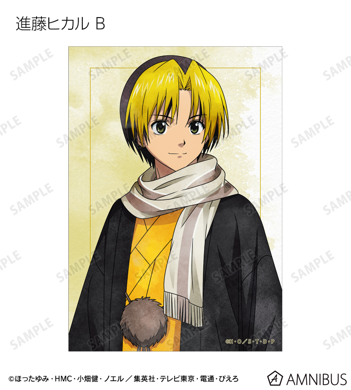 進藤ヒカル、藤原佐為、塔矢アキラ、加賀鉄男、三谷祐輝、和谷義高、伊角慎一郎の描き下ろしイラストをブロマイドに仕上げました。