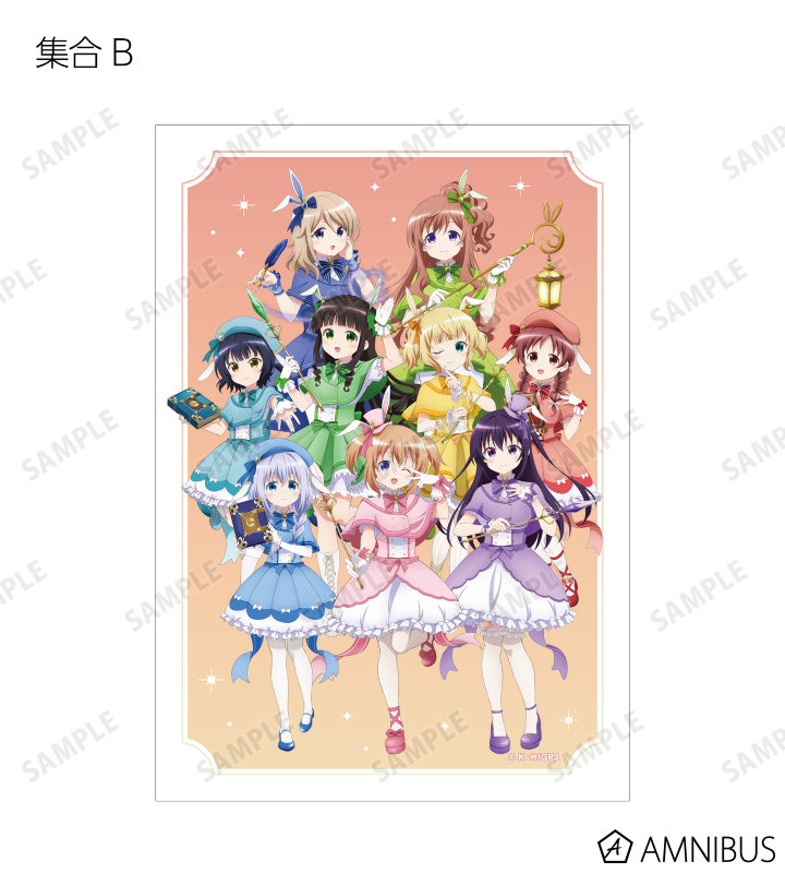ココア、チノ、リゼ、千夜、シャロ、マヤ、メグ、青山ブルーマウンテン、モカの描き下ろしイラストをブロマイドに仕上げました。