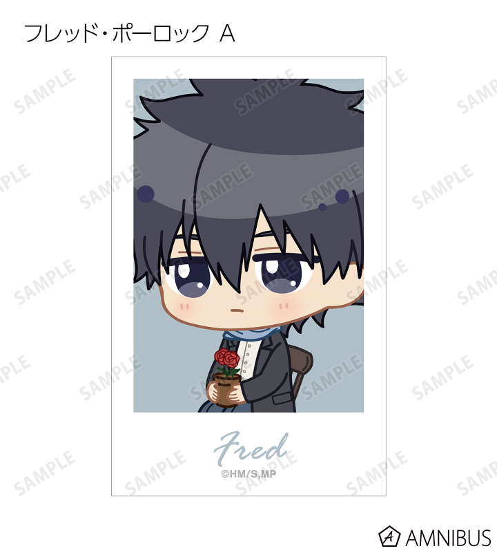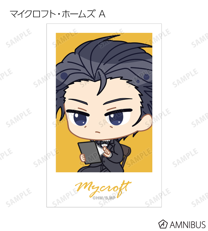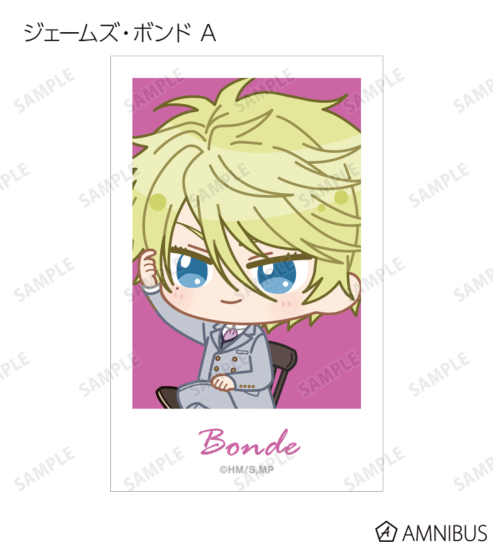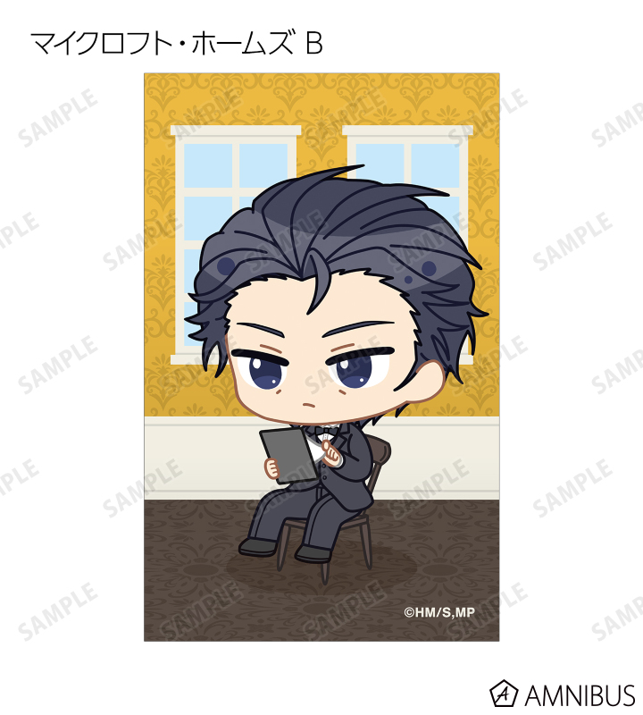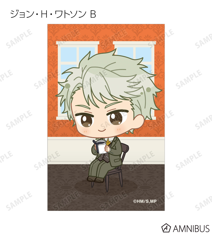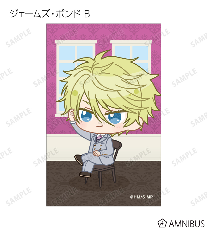 ウィリアム・ジェームズ・モリアーティ、アルバート・ジェームズ・モリアーティ、ルイス・ジェームズ・モリアーティ、セバスチャン・モラン、フレッド・ポーロック、ジェームズ・ボンド、シャーロック・ホームズ、ジョン・H・ワトソン、マイクロフト・ホームズの描き起こしちびキャライラストをメインにデザインし、イラストカードに仕上げました。