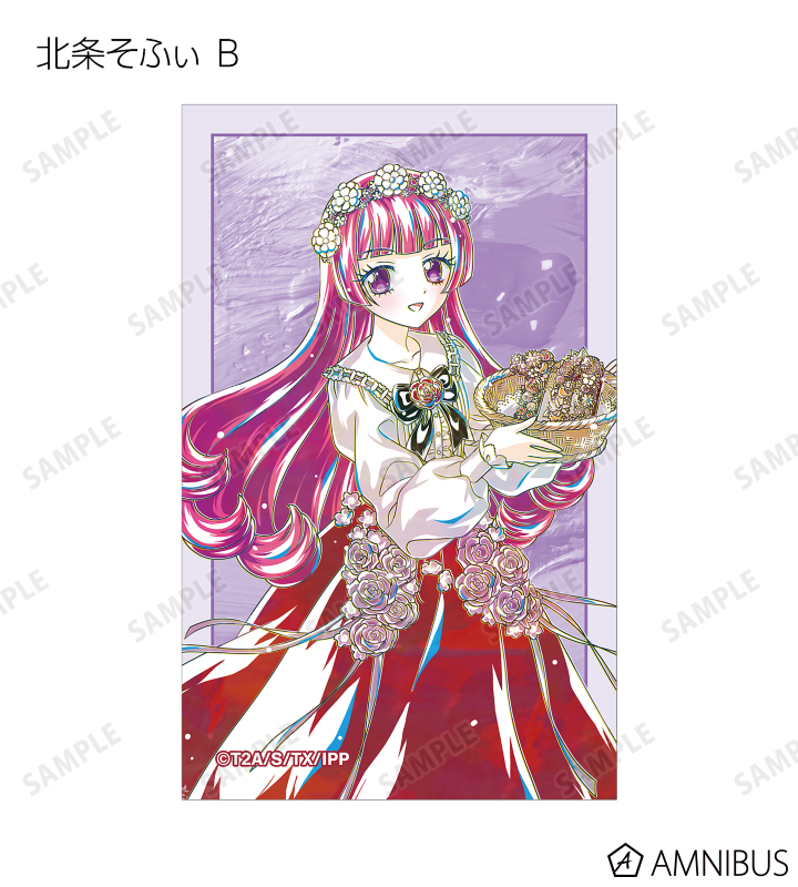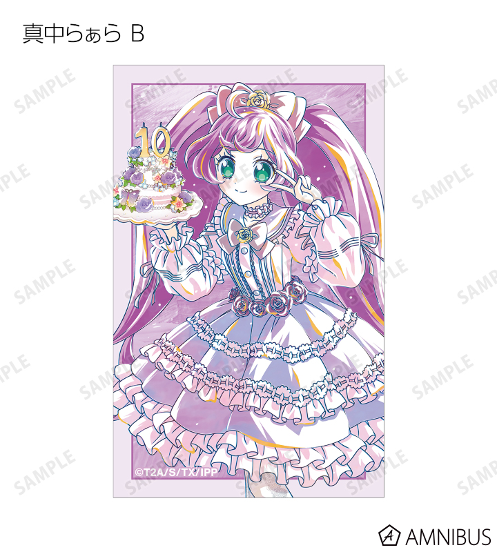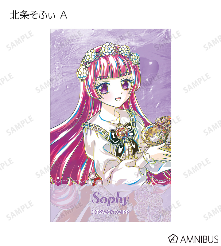 真中らぁら、南みれぃ、北条そふぃ、東堂シオン、ドロシー・ウェスト、レオナ・ウェスト、真中のん、紫京院ひびきのイラストを新たなタッチで魅力的に表現し、イラストカードに仕上げました。