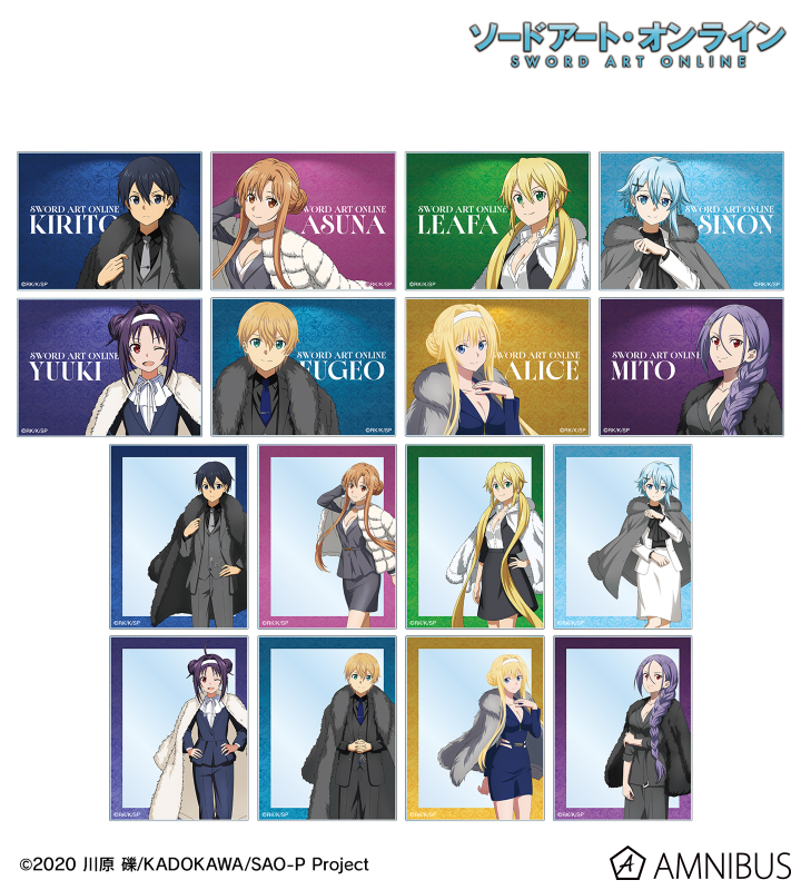 キリト、アスナ、リーファ、シノン、ユウキ、ユージオ、アリス、ミトの描き下ろしイラストをアクリルカードに仕上げました。