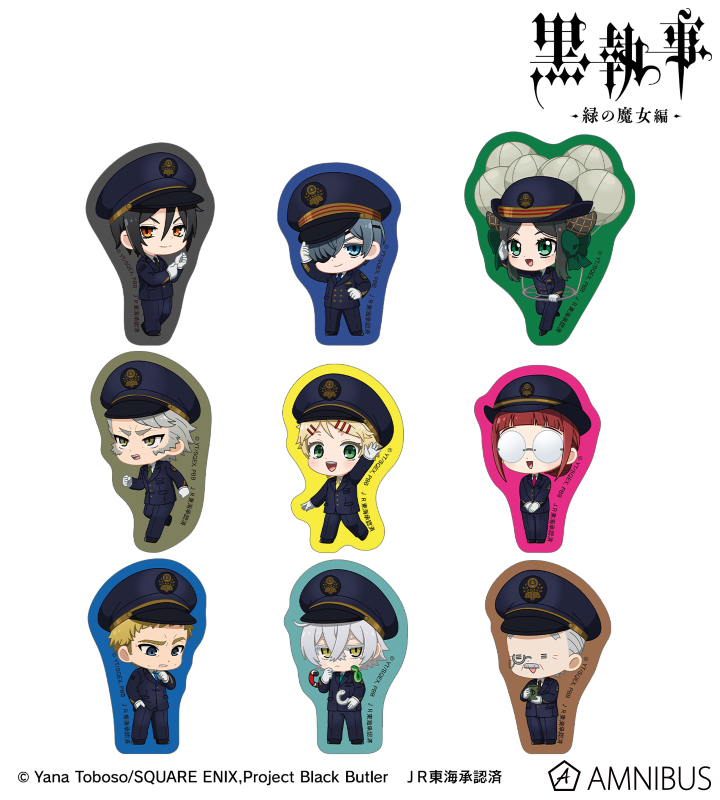 アニメ『黒執事 -緑の魔女編-』×「推し旅/JR東海」のコラボレーションアイテム「ちびキャラ 駅員ver. フレークシール」の登場です。