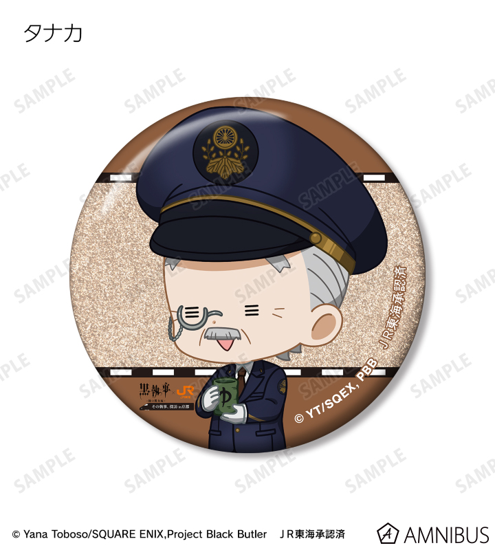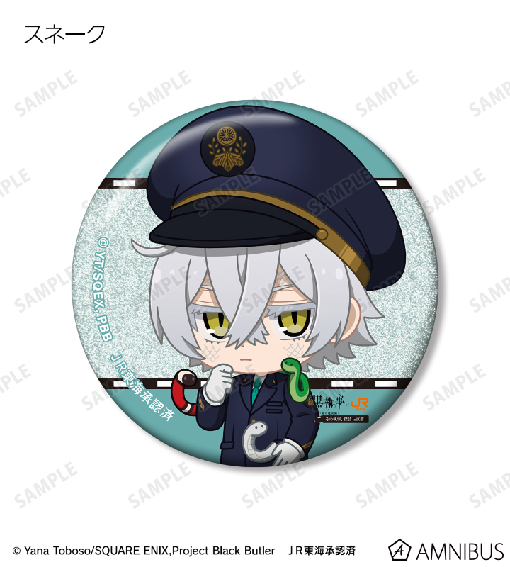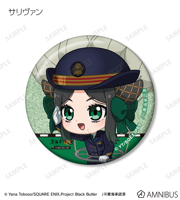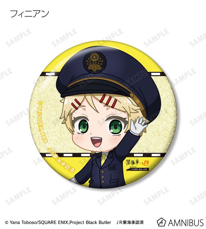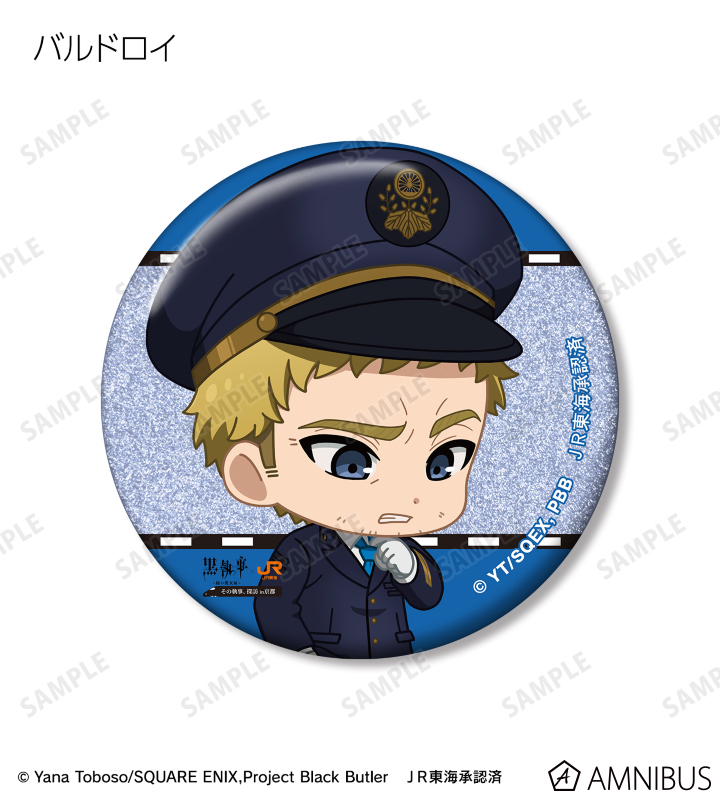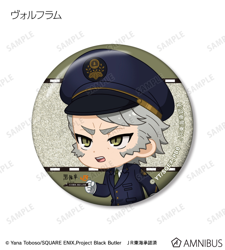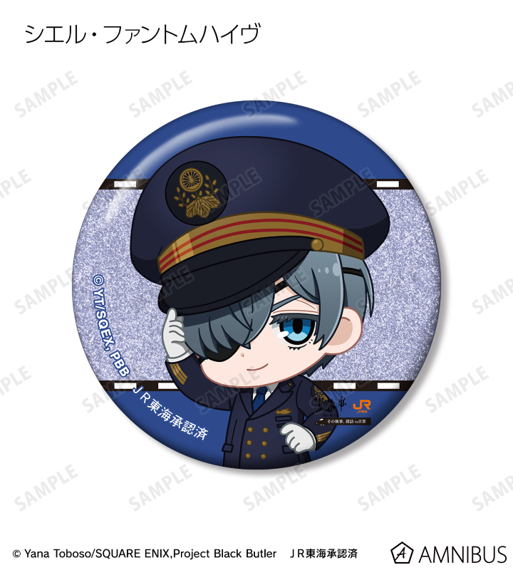 アニメ『黒執事 -緑の魔女編-』×「推し旅/JR東海」のコラボレーションアイテム「トレーディング ちびキャラ 駅員ver. グリッター缶バッジ」の登場です。