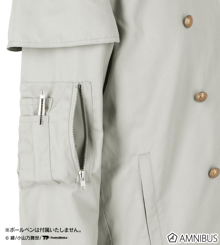 右袖には小物を入れられる便利なMA-1風ジップポケット、背面にはムレを防ぐベンチレーション(通気口)など、使い勝手の良いディテールを各所に散りばめました。
