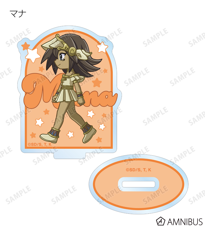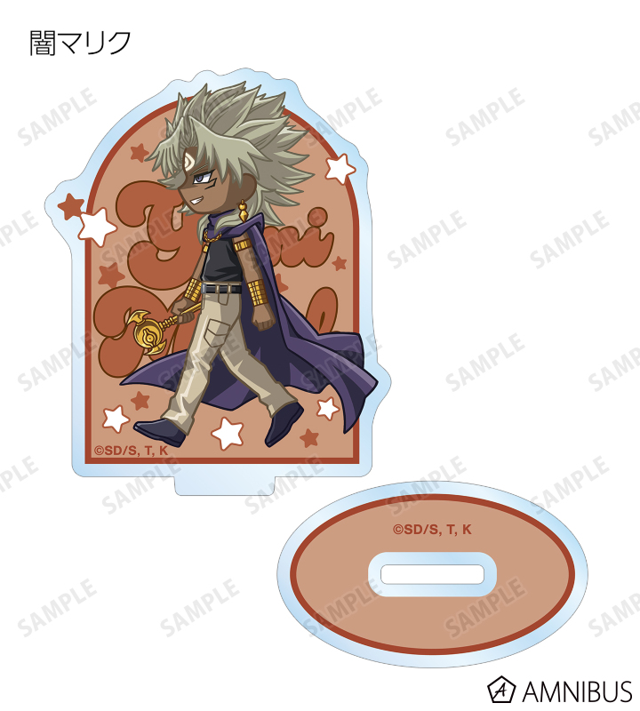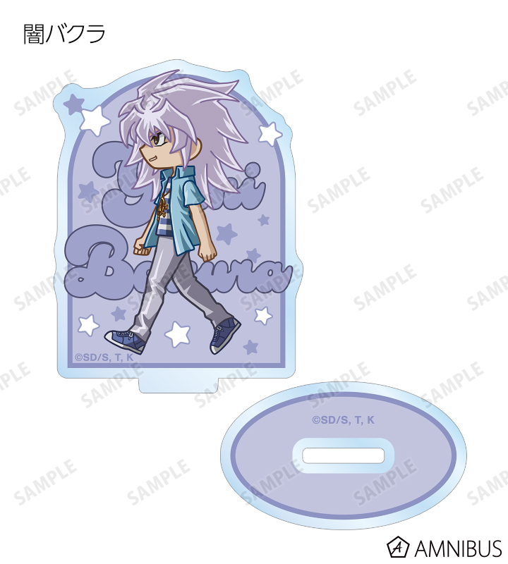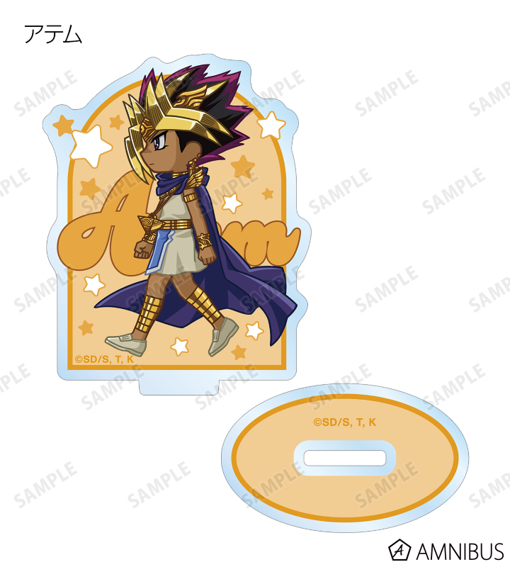 闇遊戯、武藤遊戯、海馬瀬人、城之内克也、闇マリク、闇バクラ、盗賊王バクラ、アテム、セト、ブラック・マジシャン、ブラック・マジシャン・ガール、キサラ、マハード、マナが歩いているちびキャラを新たに描き起こし、アクリルスタンドに仕上げました。