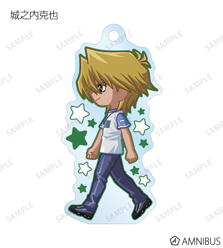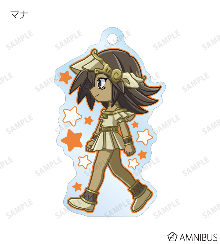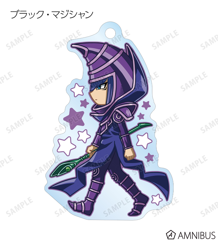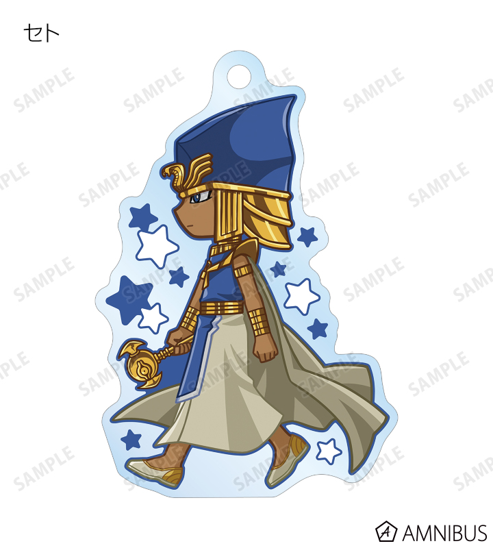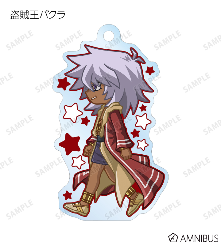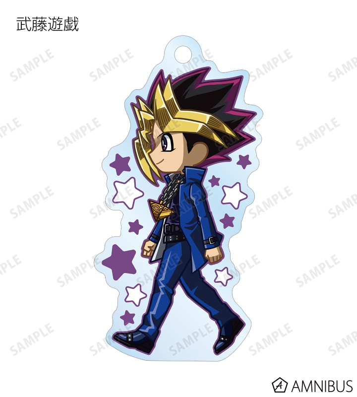 闇遊戯、武藤遊戯、海馬瀬人、城之内克也、闇マリク、闇バクラ、盗賊王バクラ、アテム、セト、ブラック・マジシャン、ブラック・マジシャン・ガール、キサラ、マハード、マナが歩いているちびキャラを新たに描き起こし、アクリルキーホルダーに仕上げました。