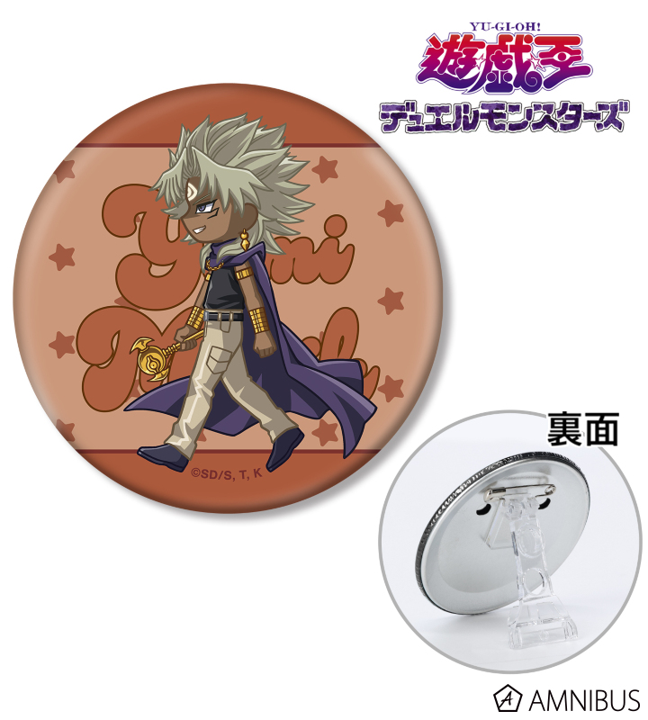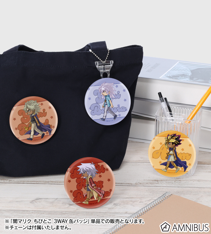 闇マリクが歩いているちびキャラを新たに描き起こし、3WAY缶バッジに仕上げました。