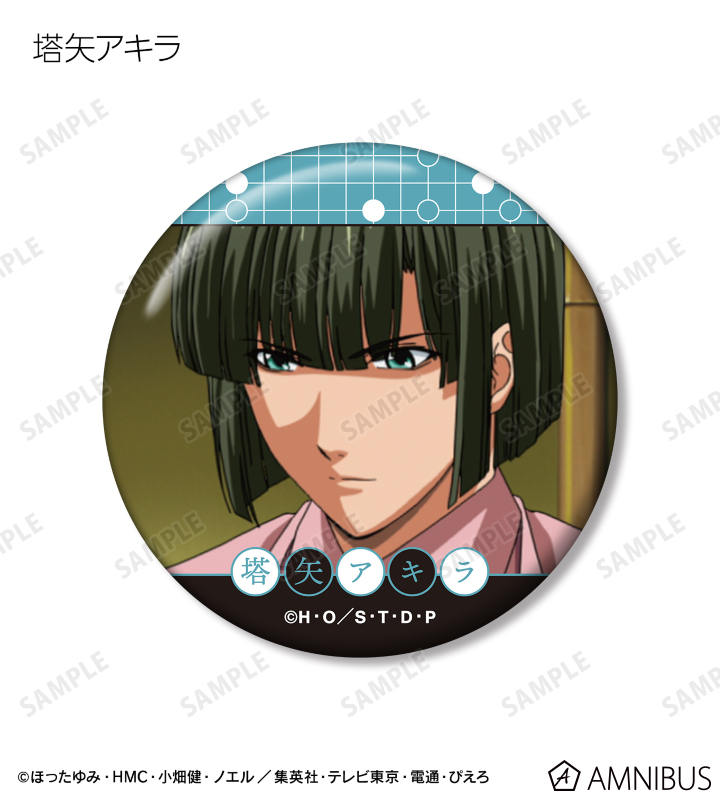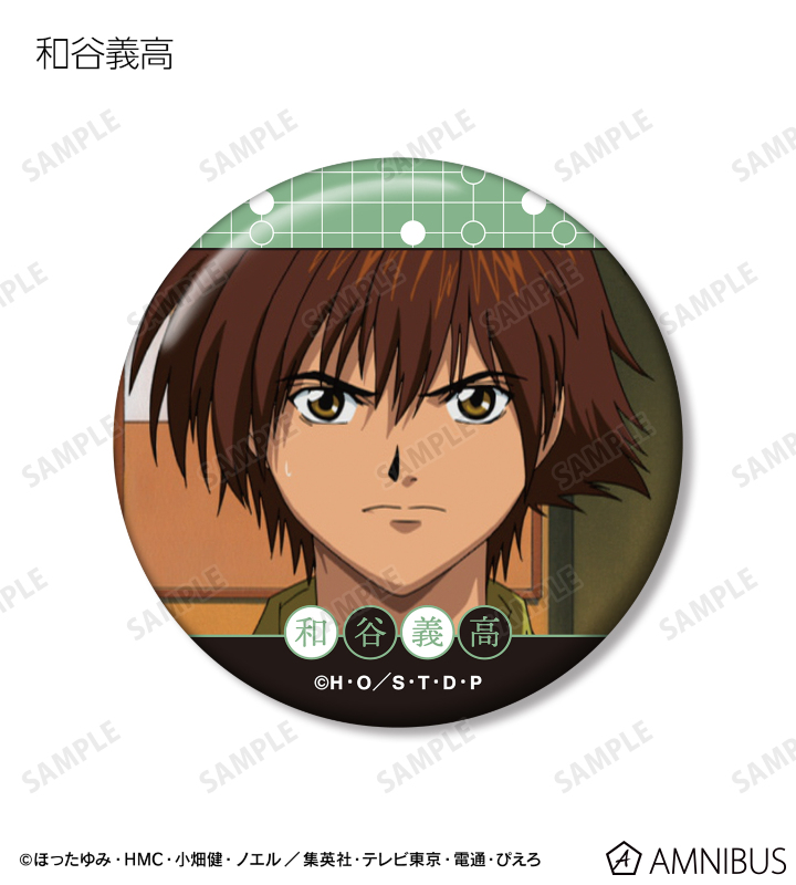 進藤ヒカル、藤原佐為、塔矢アキラ、加賀鉄男、筒井公宏、三谷祐輝、藤崎あかり、和谷義高、伊角慎一郎、緒方精次の印象的なシーンを缶バッジに仕上げました。