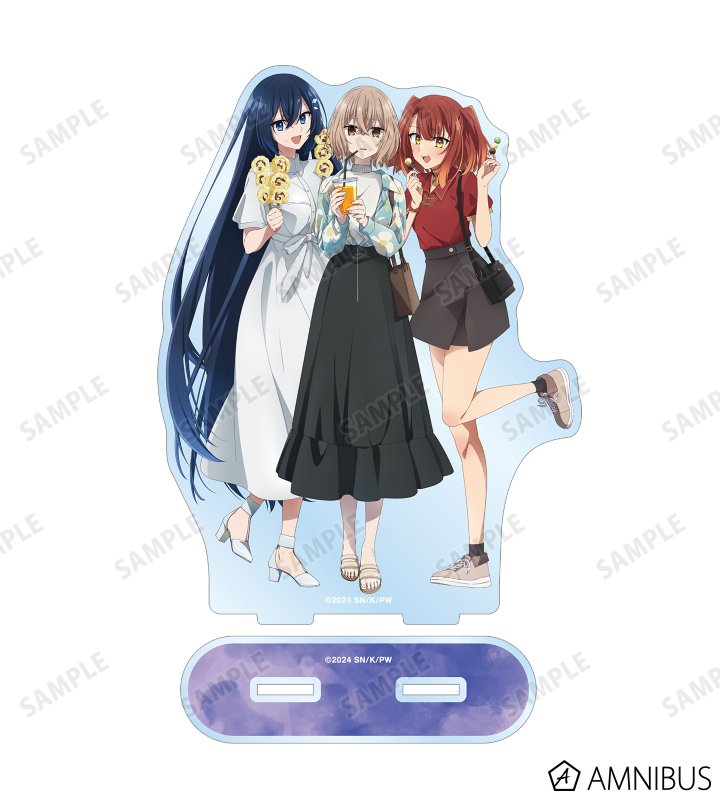 八百歳比名子、近江汐莉、社 美胡のイラストをBIGなアクリルスタンドに仕上げました。