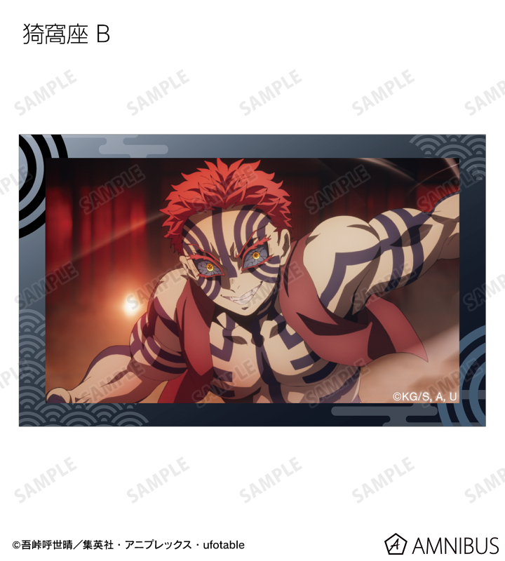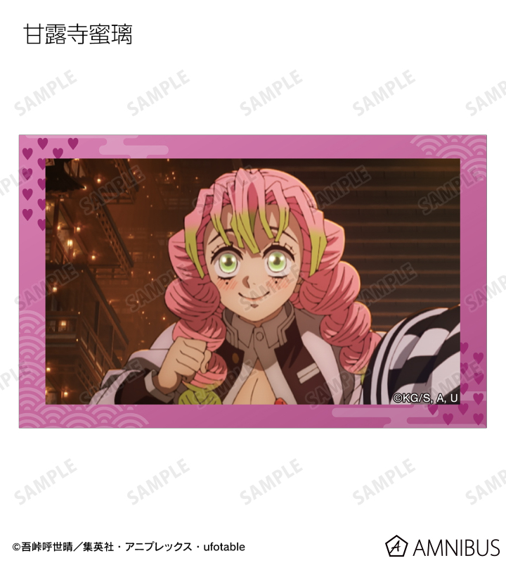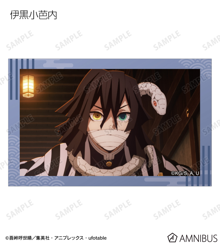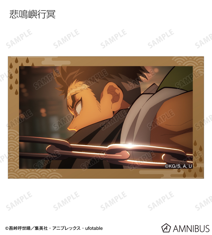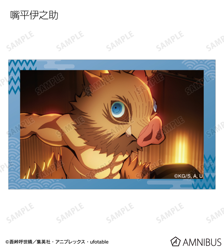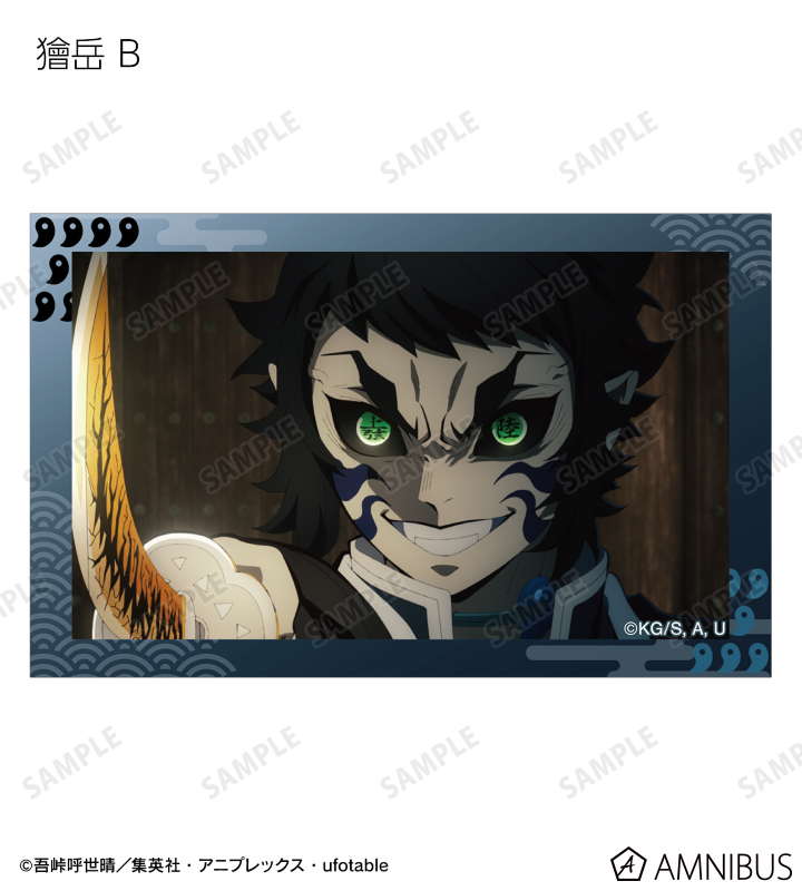竈門炭治郎、我妻善逸、嘴平伊之助、冨岡義勇、胡蝶しのぶ、甘露寺蜜璃、時透無一郎、悲鳴嶼行冥、不死川実弥、伊黒小芭内、童磨、猗窩座、獪岳の印象的なシーンをイラストカードに仕上げました。