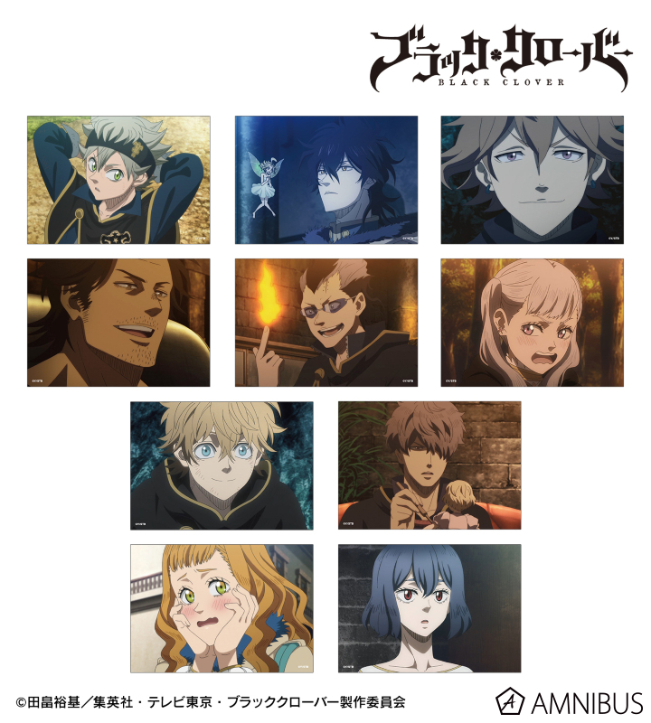 アスタ、ユノ、フィンラル、ヤミ、マグナ、ノエル、ラック、ゴーシュ、ミモザ、セクレの印象的なシーンをブロマイドに仕上げました。