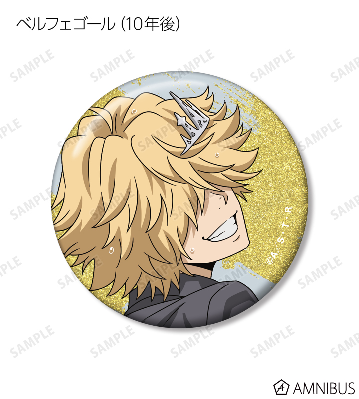 沢田 綱吉、リボーン、獄寺 隼人、山本 武、雲雀 恭弥、六道 骸(10年後)、XANXUS(10年後)、スペルビ・スクアーロ(10年後)、ベルフェゴール(10年後)、フランの描き下ろしイラストをグリッター加工を施した缶バッジに仕上げました。