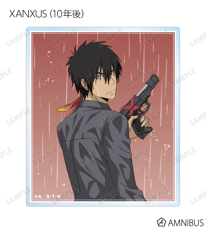 沢田 綱吉、リボーン、獄寺 隼人、山本 武、雲雀 恭弥、六道 骸(10年後)、XANXUS(10年後)、スペルビ・スクアーロ(10年後)、ベルフェゴール(10年後)、フランの描き下ろしイラストをアクリルカードに仕上げました。